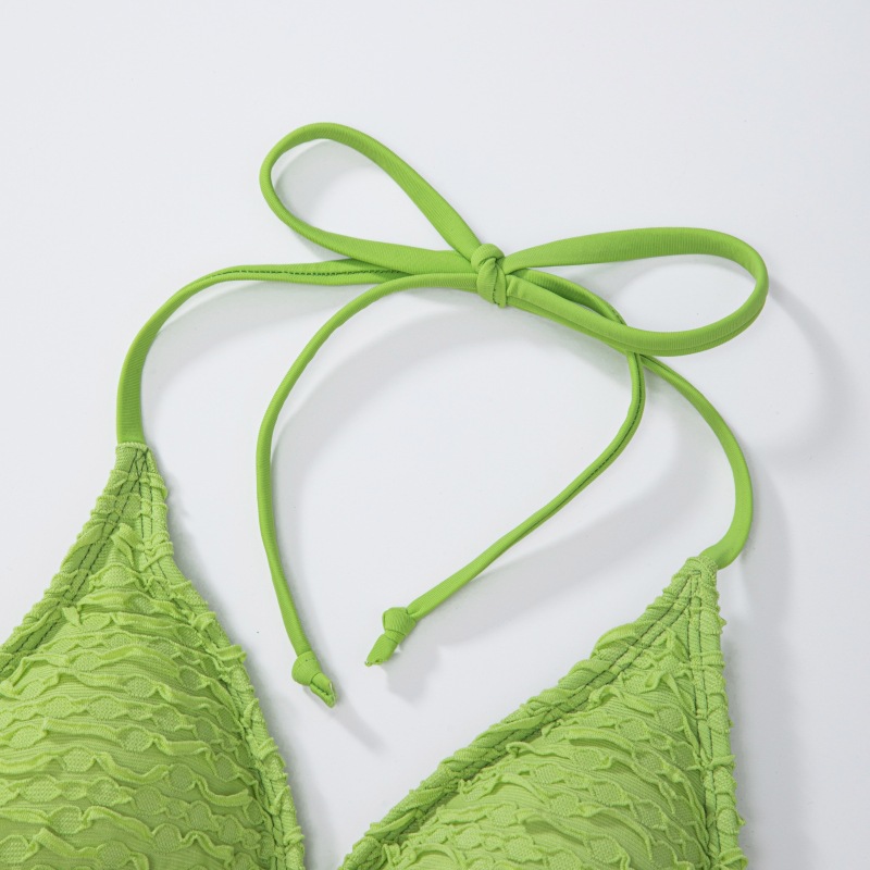 Color is a vibrant lime green, designed to stand out while remaining versatile for beach wear and resort looks. This bikini set combines comfort with a flattering silhouette that moves with you in sun and surf.
