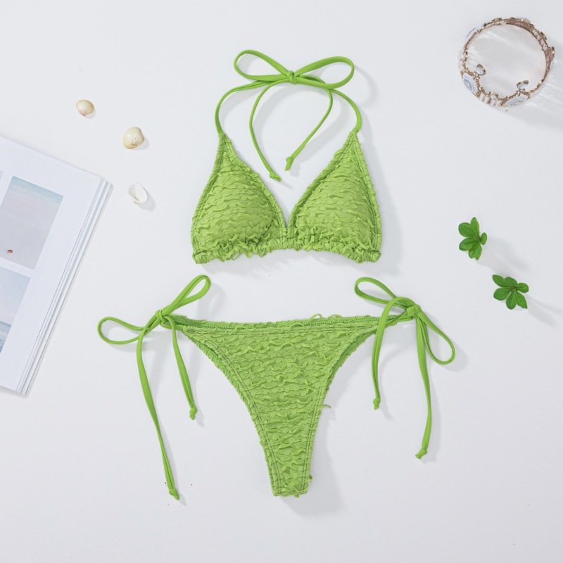 Lace Up Solid Color Jacquard Sexy Bikini Swimsuit