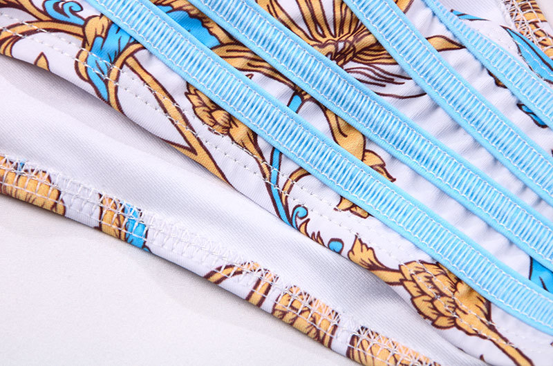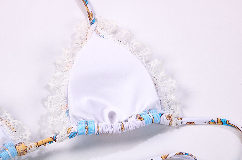 Swimsuit Women Sexy Ribbon Stitching Lace Strap Printing Bikini