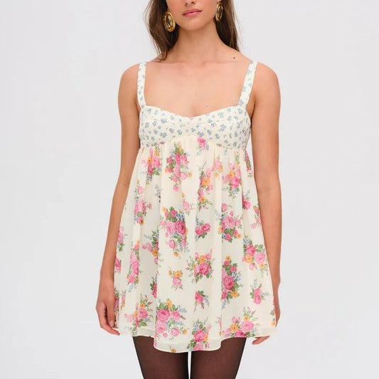 Winter Vacation Color Matching Chest Embroidered Printed Backless Casual Sling Dress