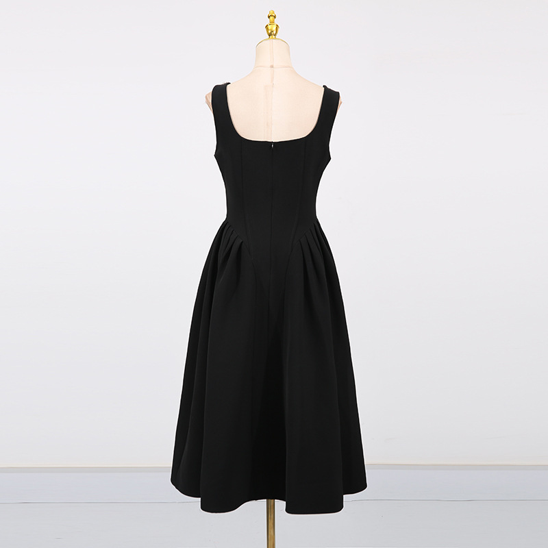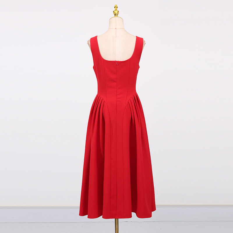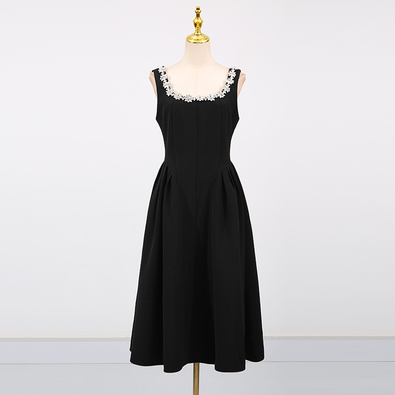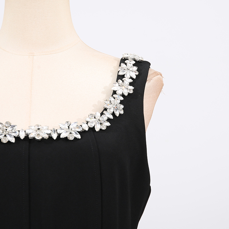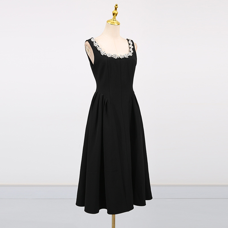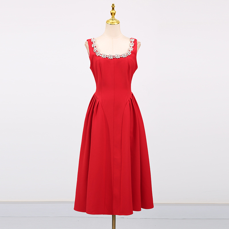 Entry Lux Elegant Dress Autumn Dinner Dress Diamond Embedded Pleating Slim Slimming Dress Women