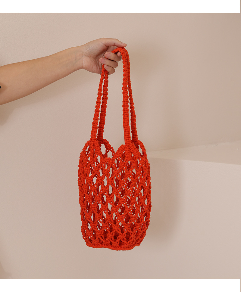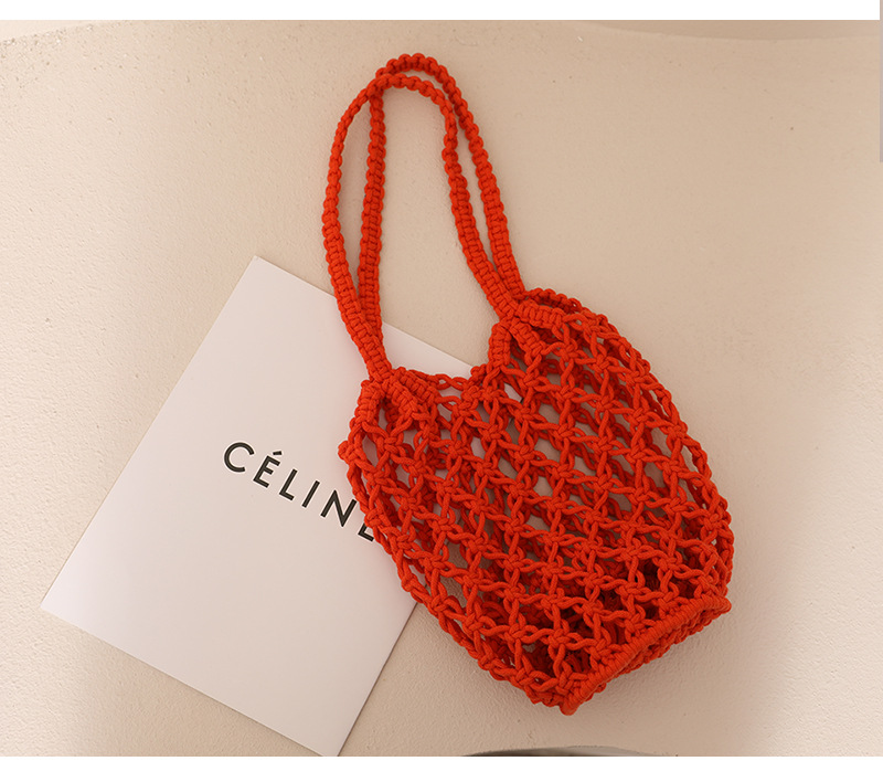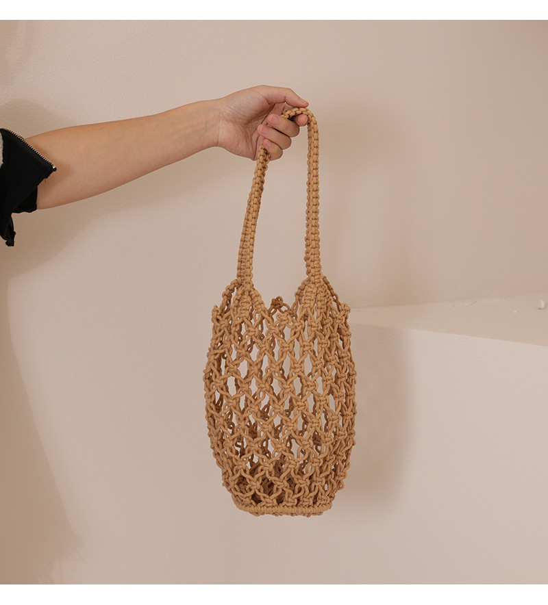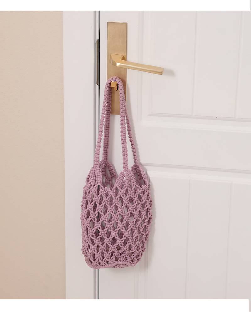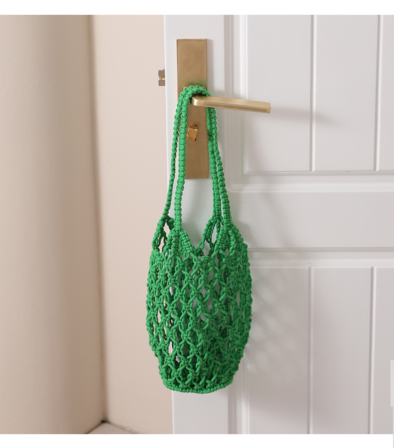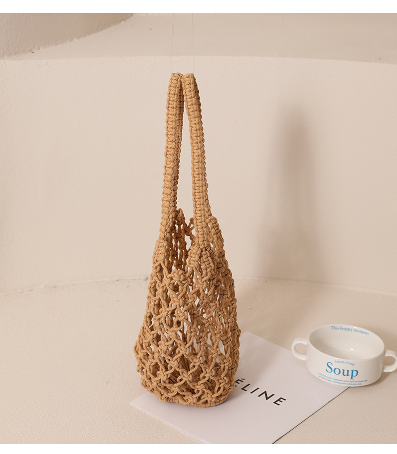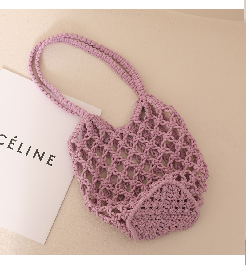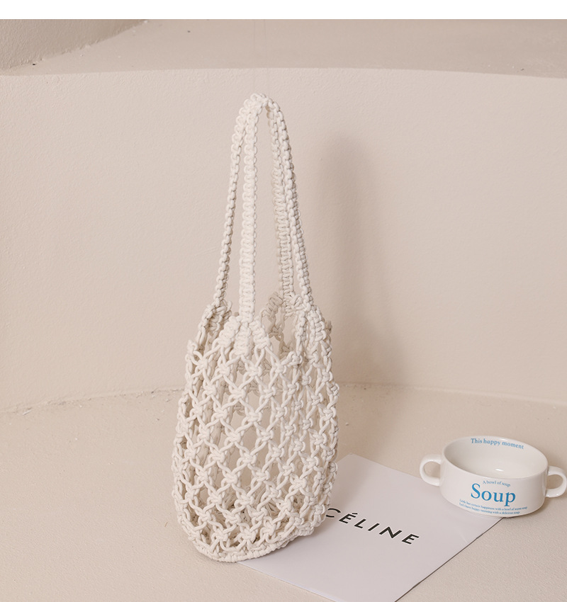 Hollow Out Cutout Cotton Thread Woven Bag Shoulder Handmade Straw Bag Fishing Net Bag Seaside Vacation Beach Bag Women Bag