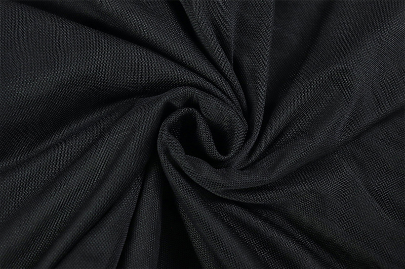 The solid-color, short dress is crafted from polyester to deliver a smooth, figure-skimming silhouette. Its design combines see-through mesh with hollow-out cutouts and lace/tulle/fishnet detailing for texture and visual interest. A backless, sleeveless configuration adds boldness while maintaining an elegant line.