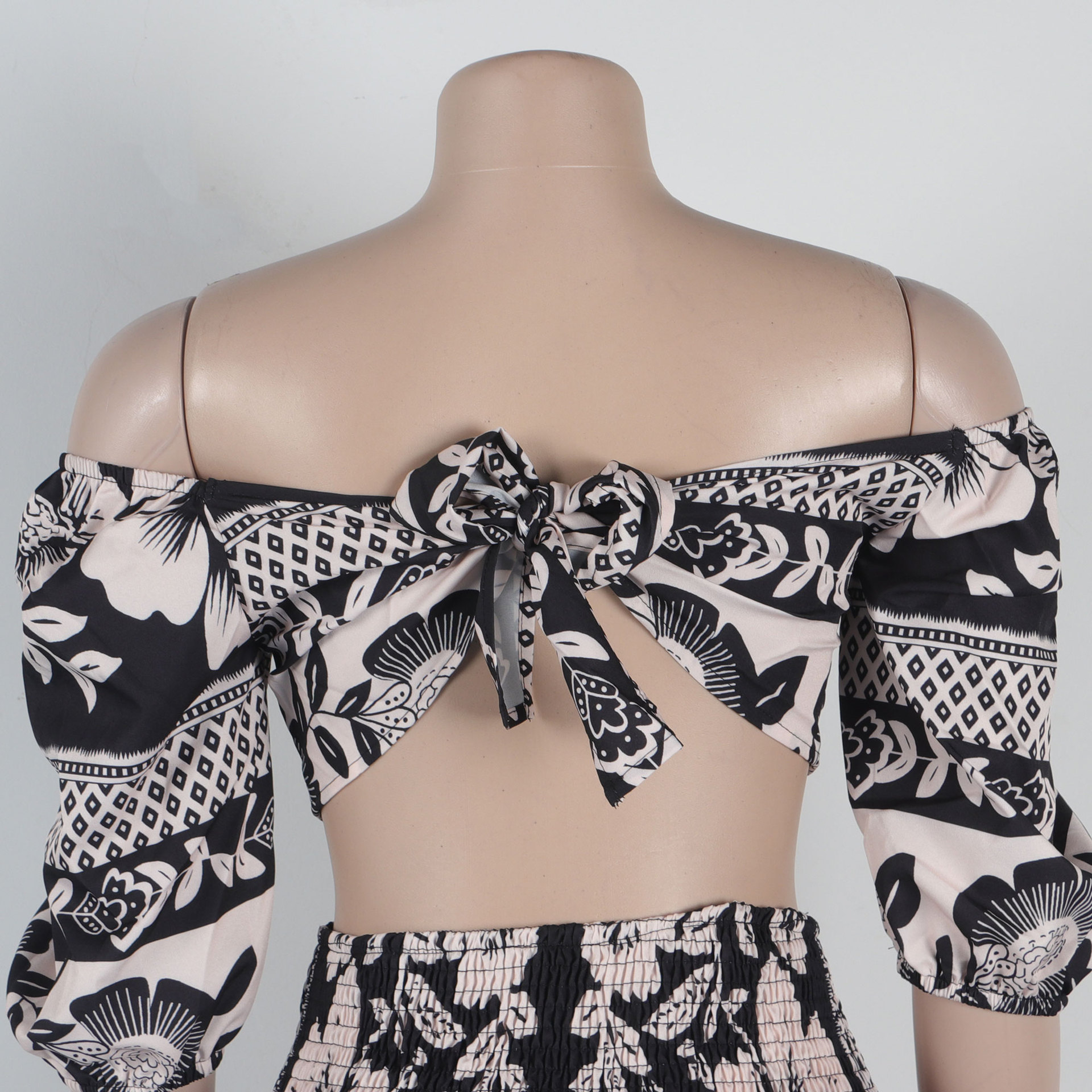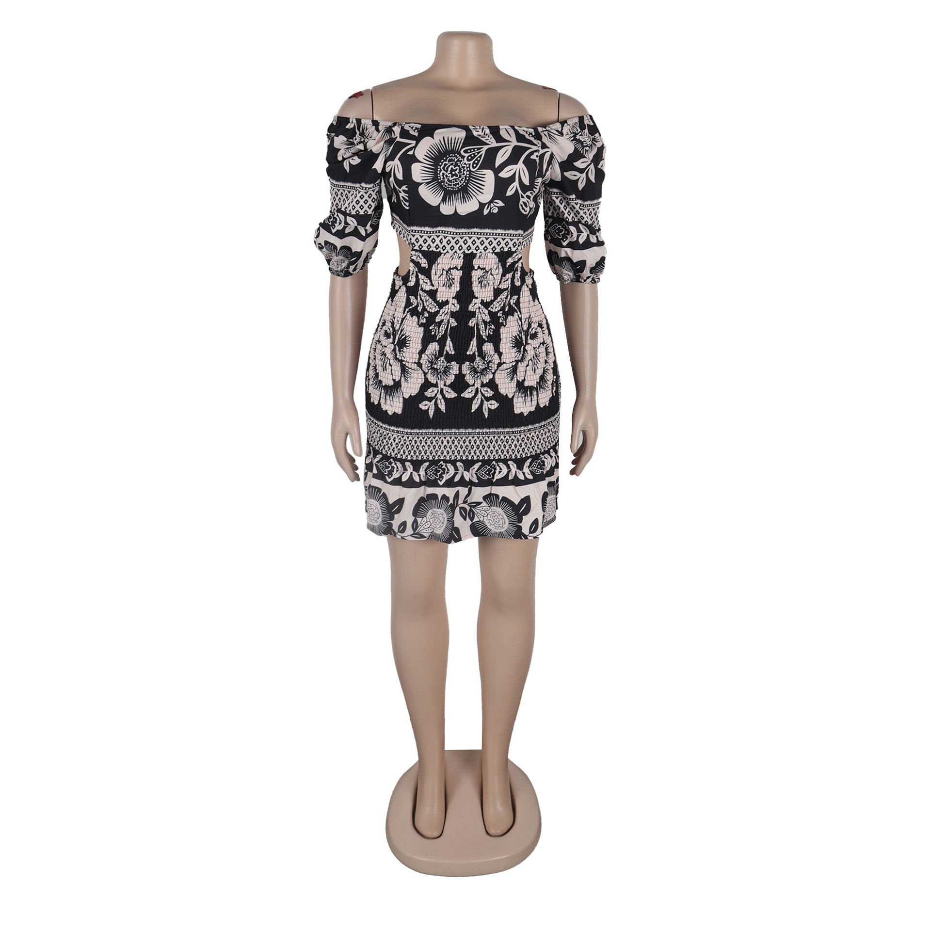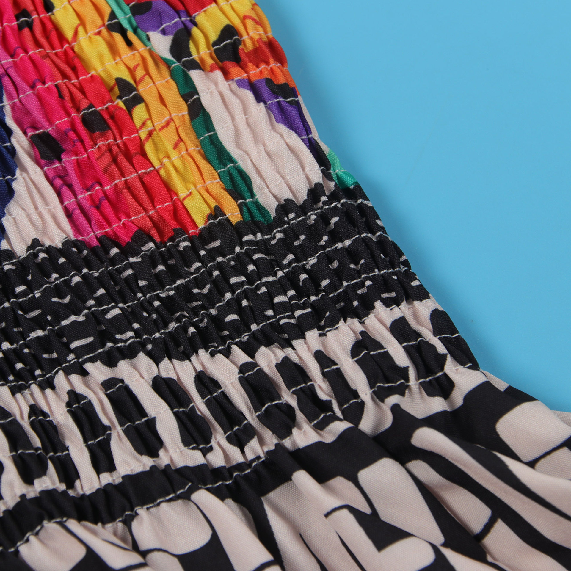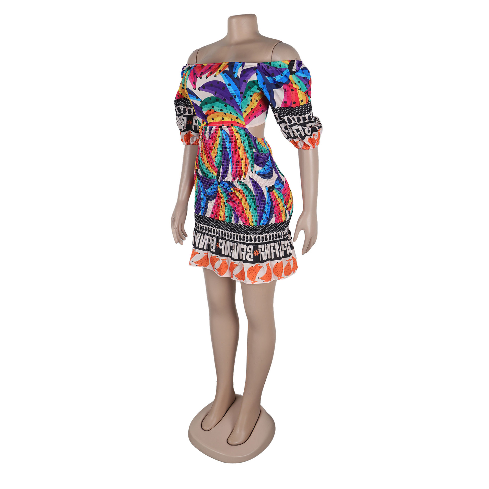 Printed Waist Controlled Backless Lantern Sleeve Smocking Off Shoulder Two Way Wear Dress Bella Mia