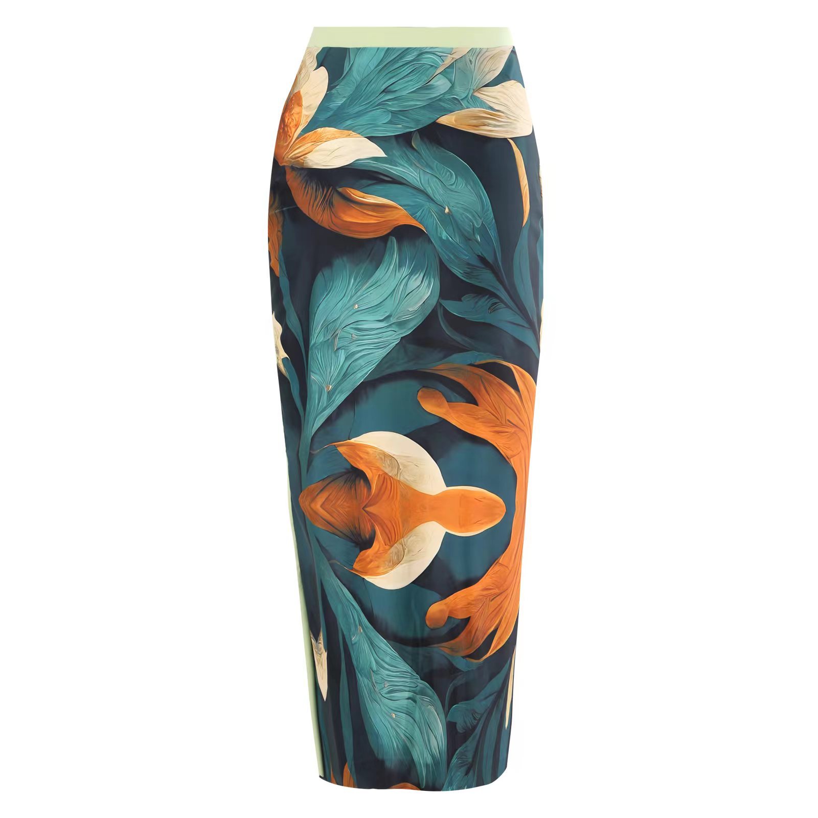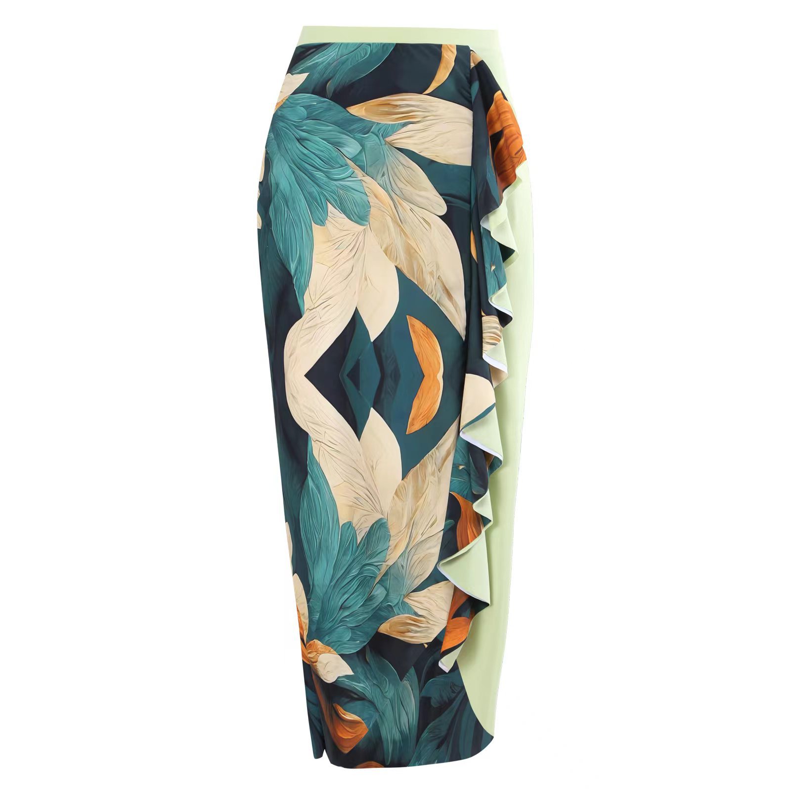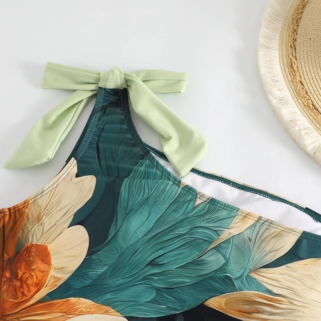 Retro One Piece Swimsuit Sexy One Shoulder Swimwear Printed Beach Skirt Set