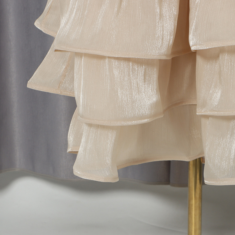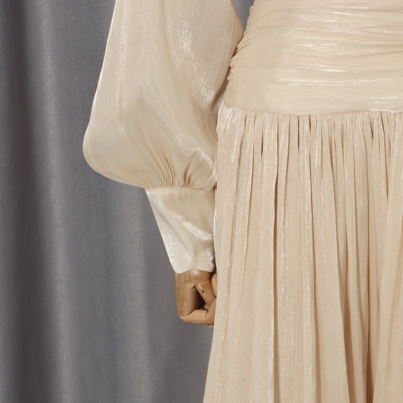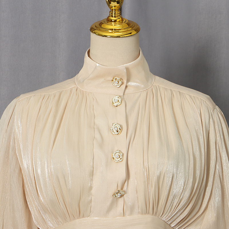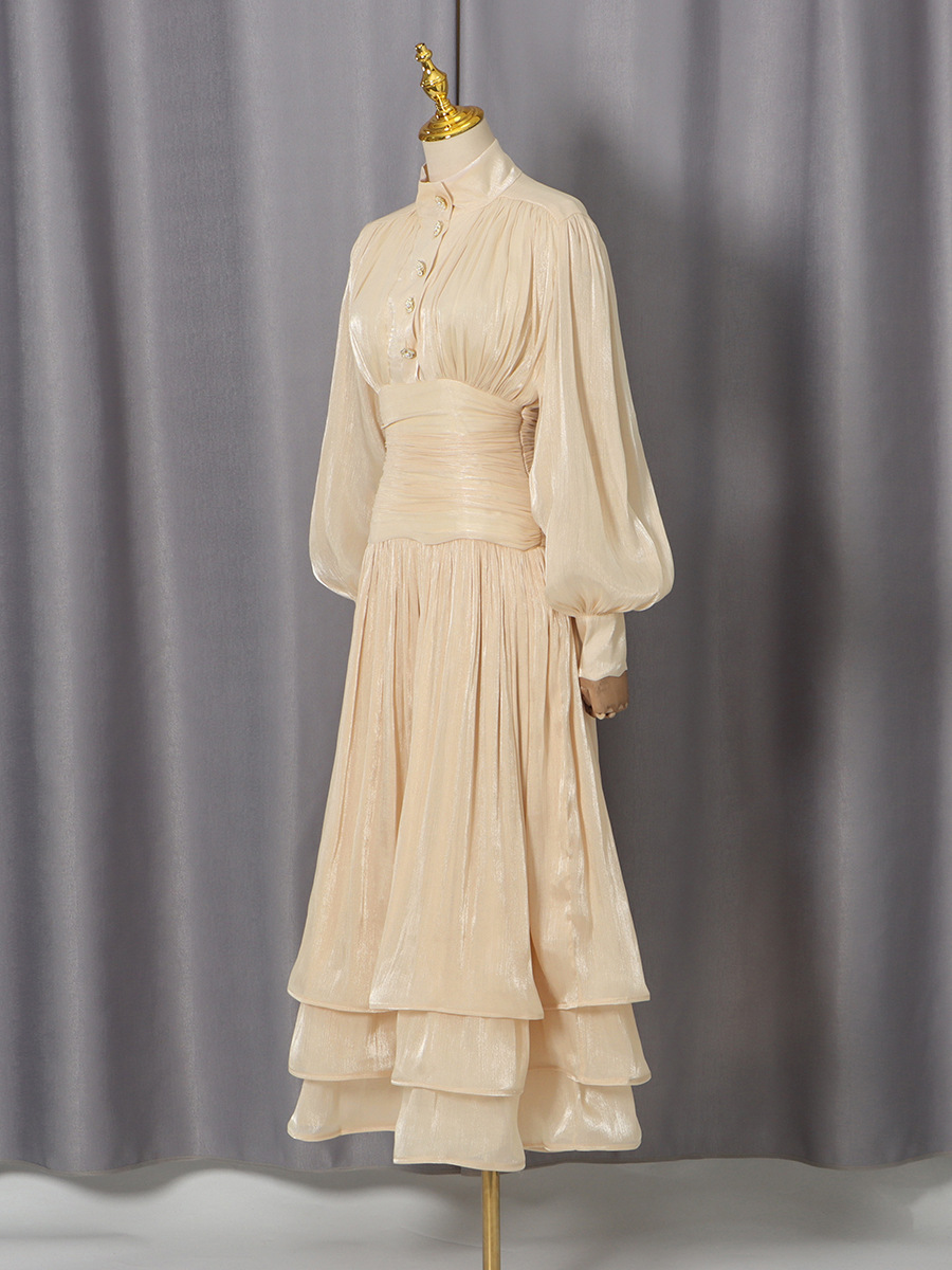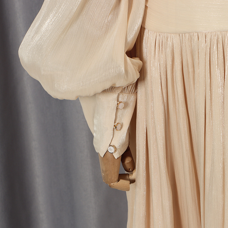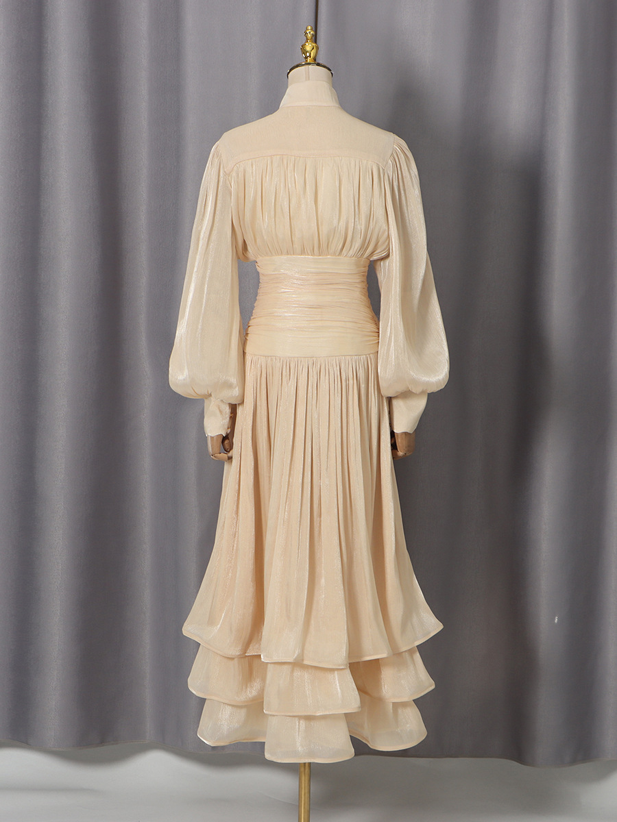 Spring Elegant Retro Lantern Sleeve Breasted Ruffled Maxi Dress Waist Slimming Dress