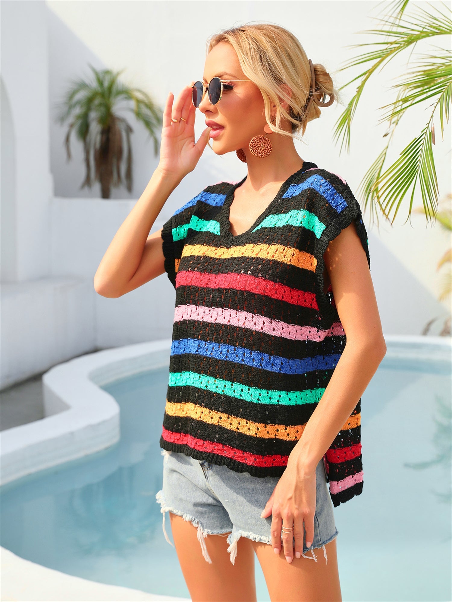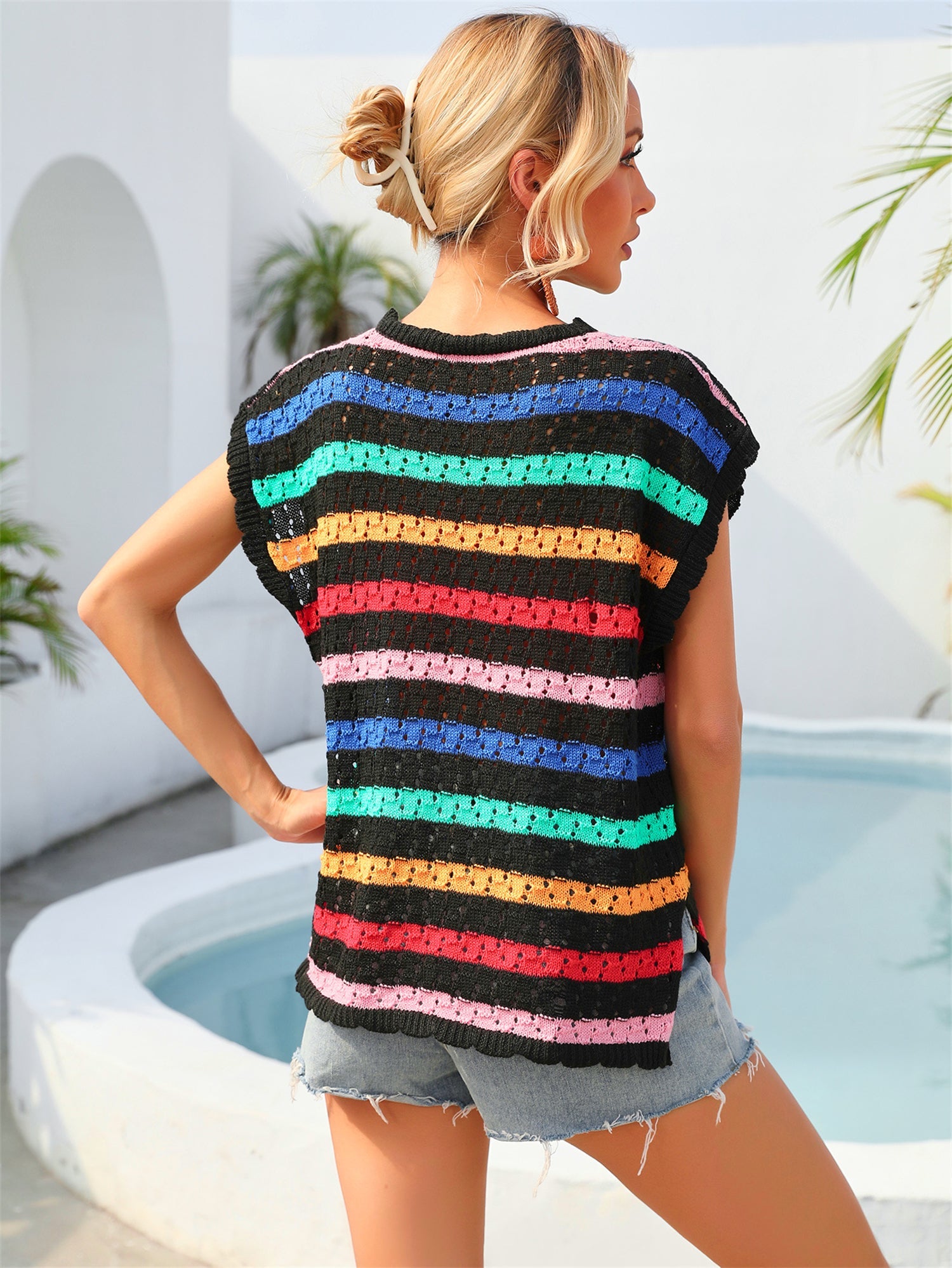 Summer Beach Cover up Vest Knitting Bikini Vacation Blouse Seaside Sun Protection Shirt