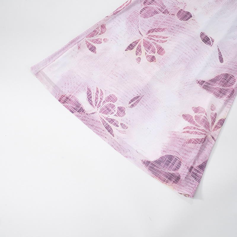 Women Clothing Tube Top Backless Floral Print Stitching Lining Sheath Dress