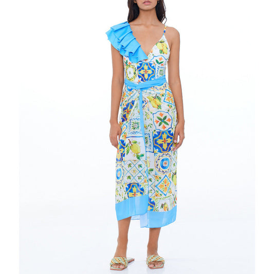 Chiffon Printed Beach Cover up Sexy Slit Skirt Vacation Skirt Beach Cover Up Women