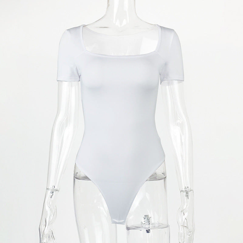 Bodysuit summer women clothing sexy tight square collar short sleeve bodysuit