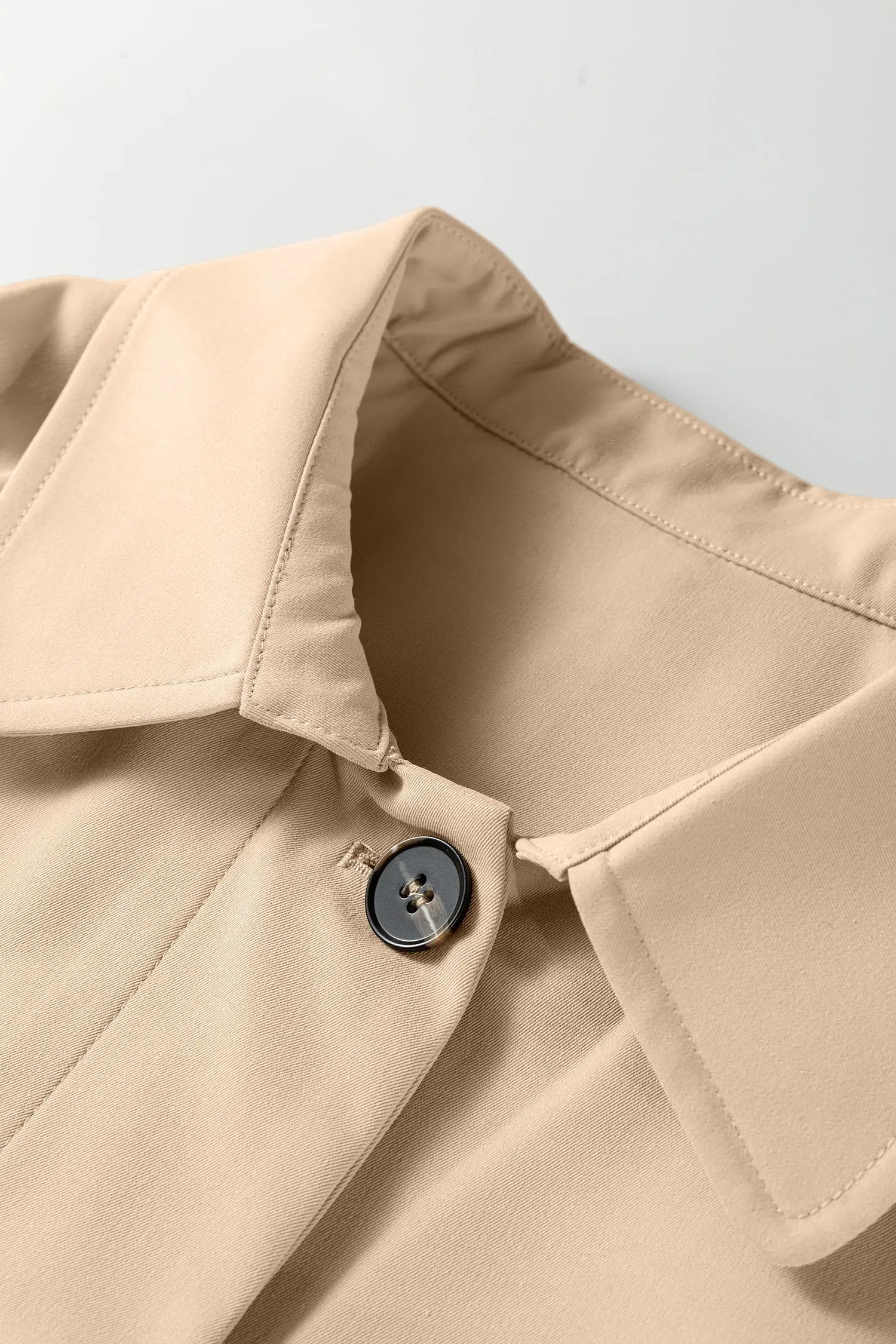 Parchment Plaid Liner Patchwork Single Breasted Trench Coat For Women