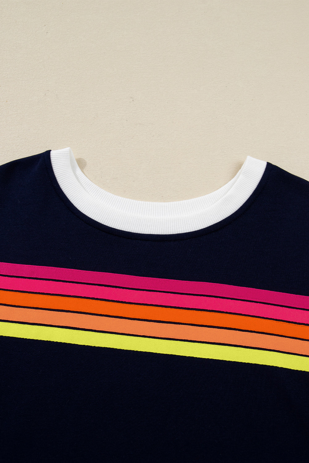 Bluing Striped Varsity Set Long Sleeve Pullover and Shorts