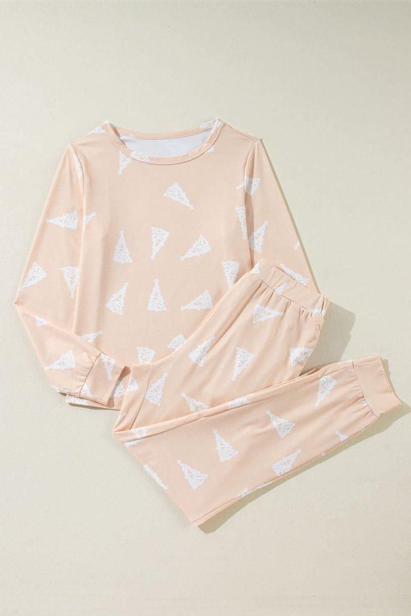 Love Salve Apricot Christmas Tree Print Loose Fit Two Piece