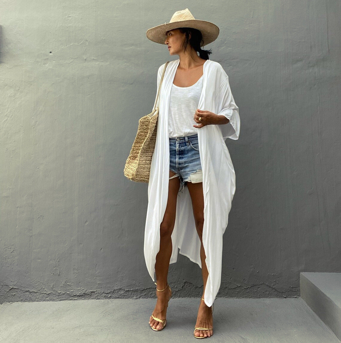 Rayon Solid Color Cardigan Holiday Casual Beach Bikini Cover 5 Colors