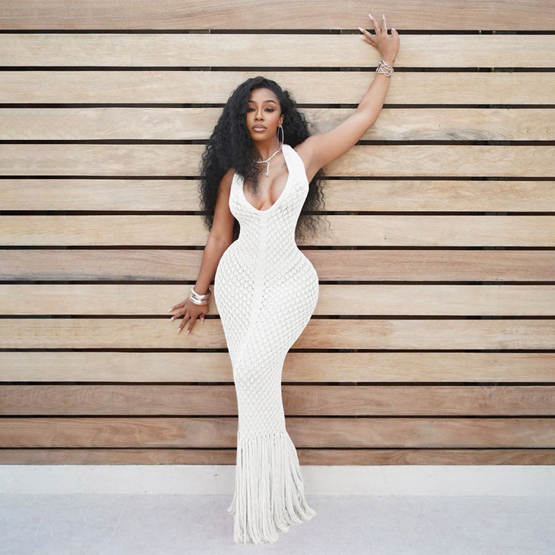 Summer Knit Maxi Dress – Backless Halter Beach Cover Up
