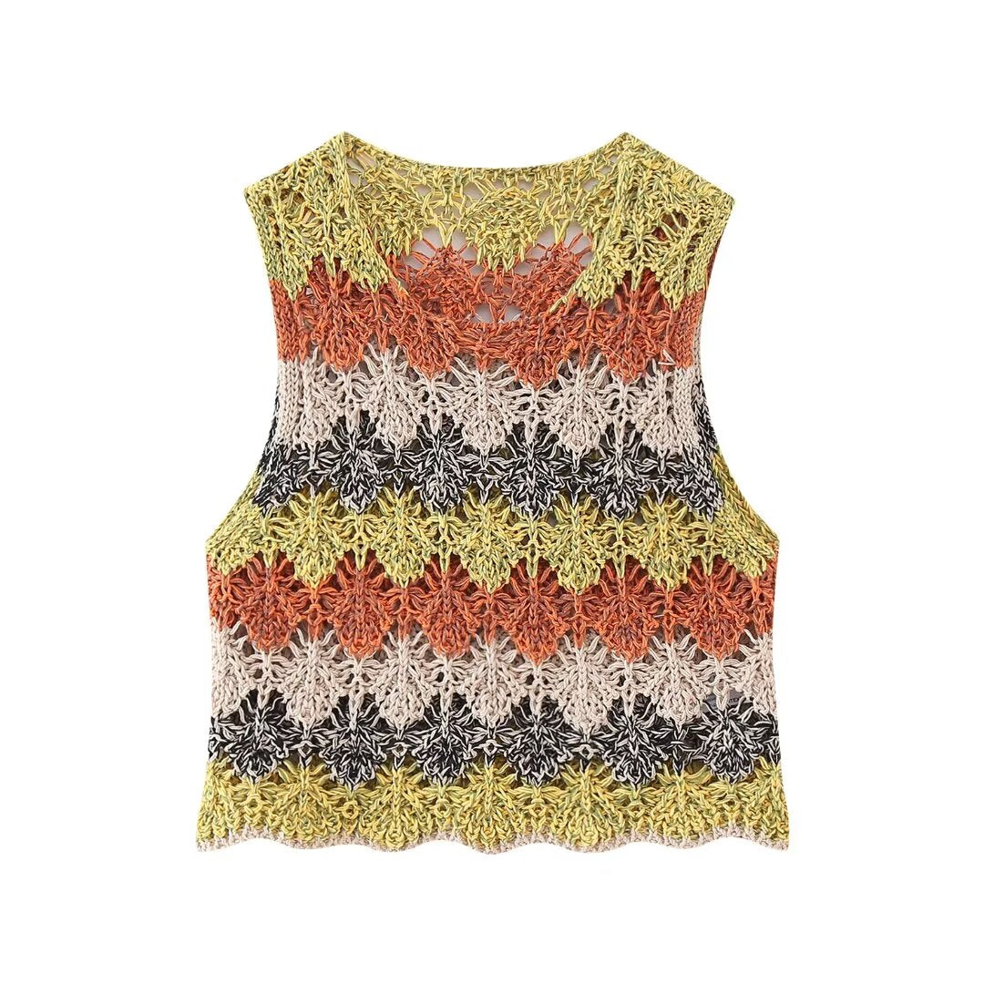Summer Women Clothing Street Casual Hollow Out Cutout Round Sleeveless Knitwear