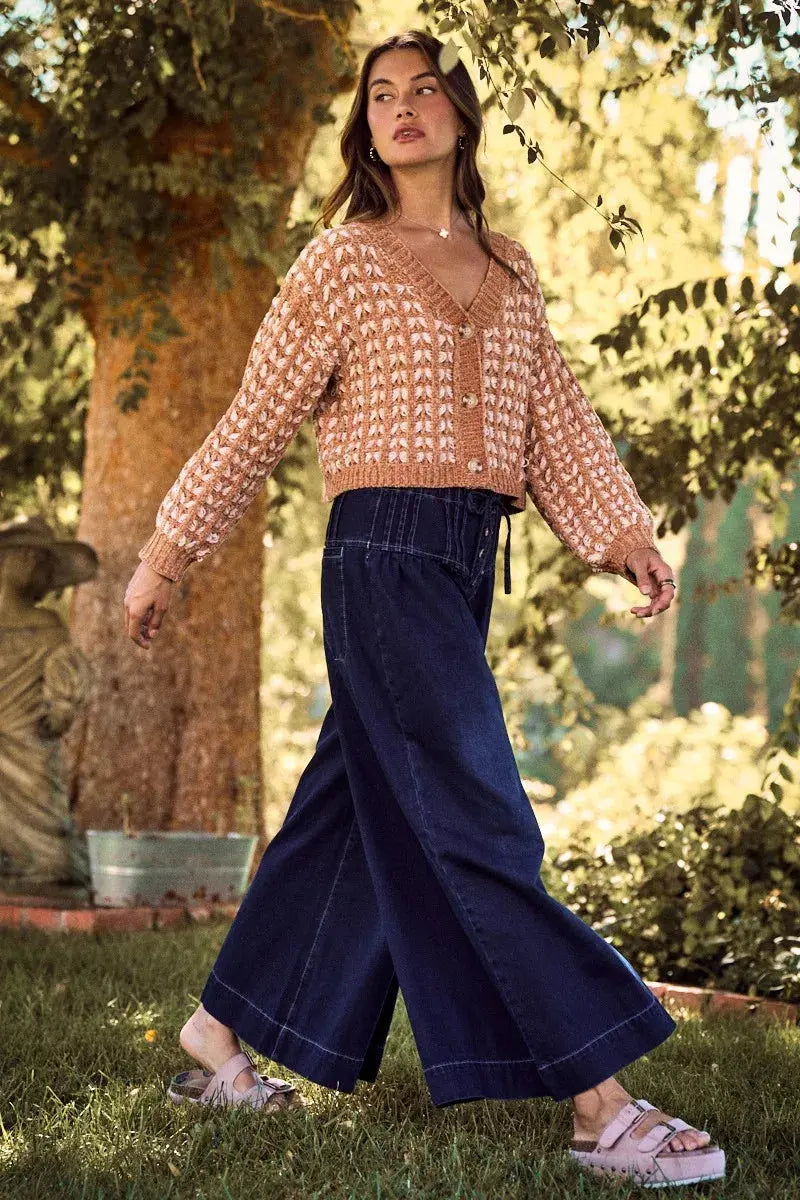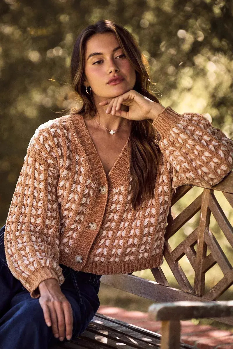 Soft Chenille Yarn Textured Cardigan With Button Front