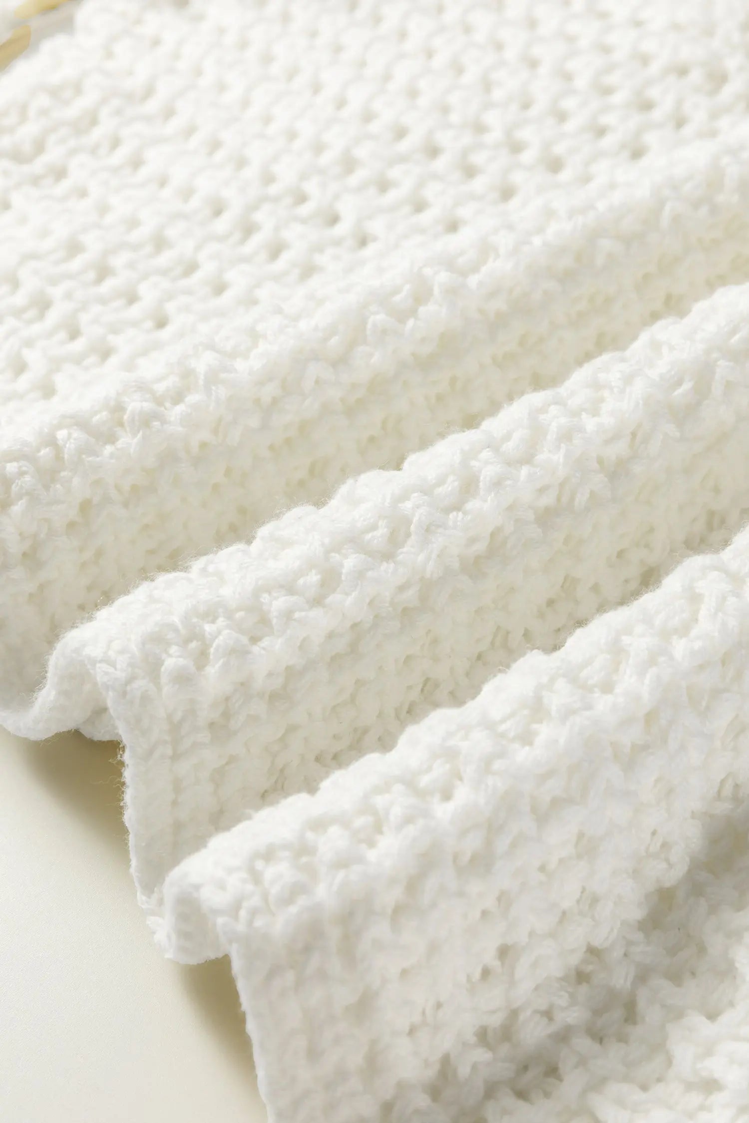 White Hollowed Detail Wide Sleeve Loose Pullover Sweater