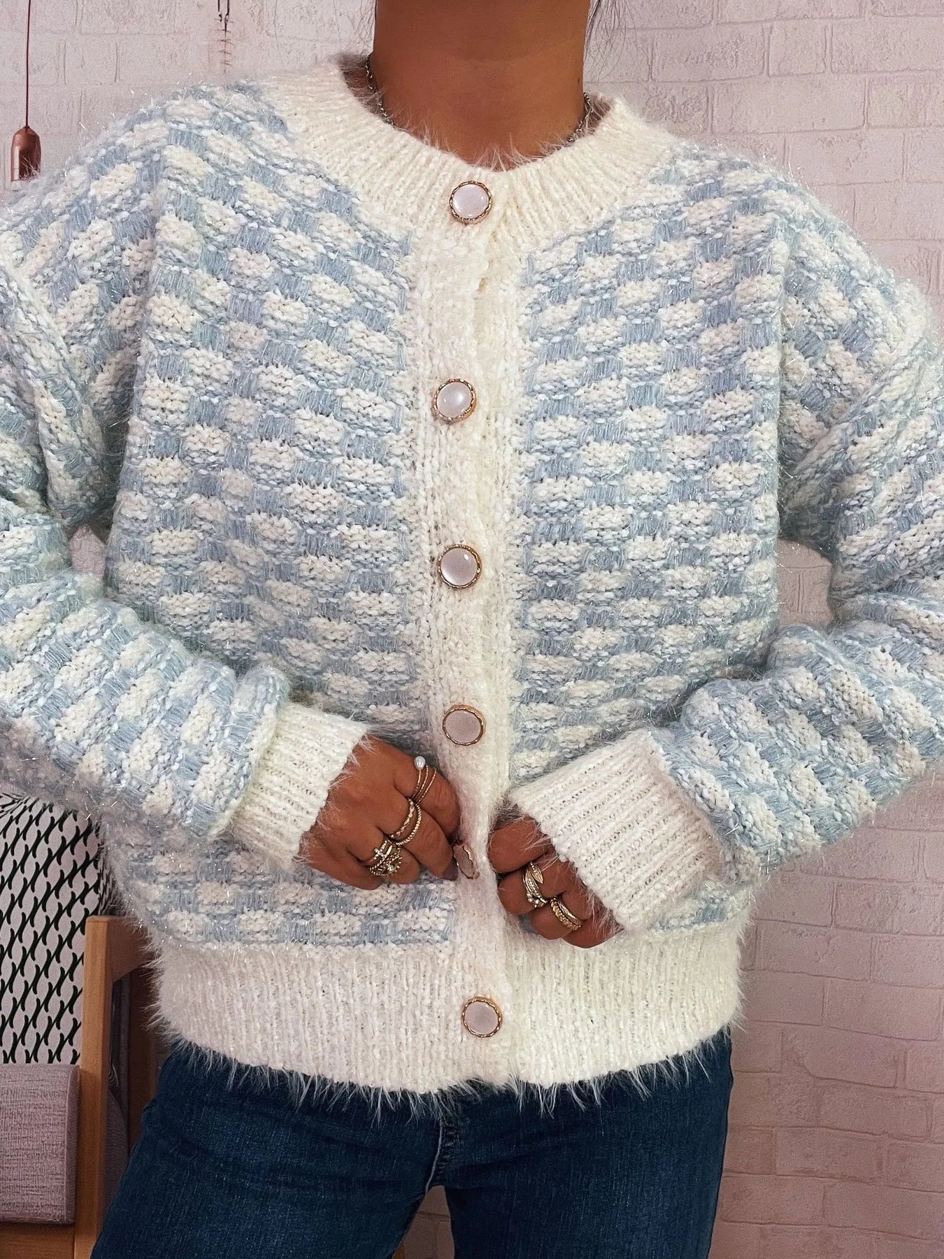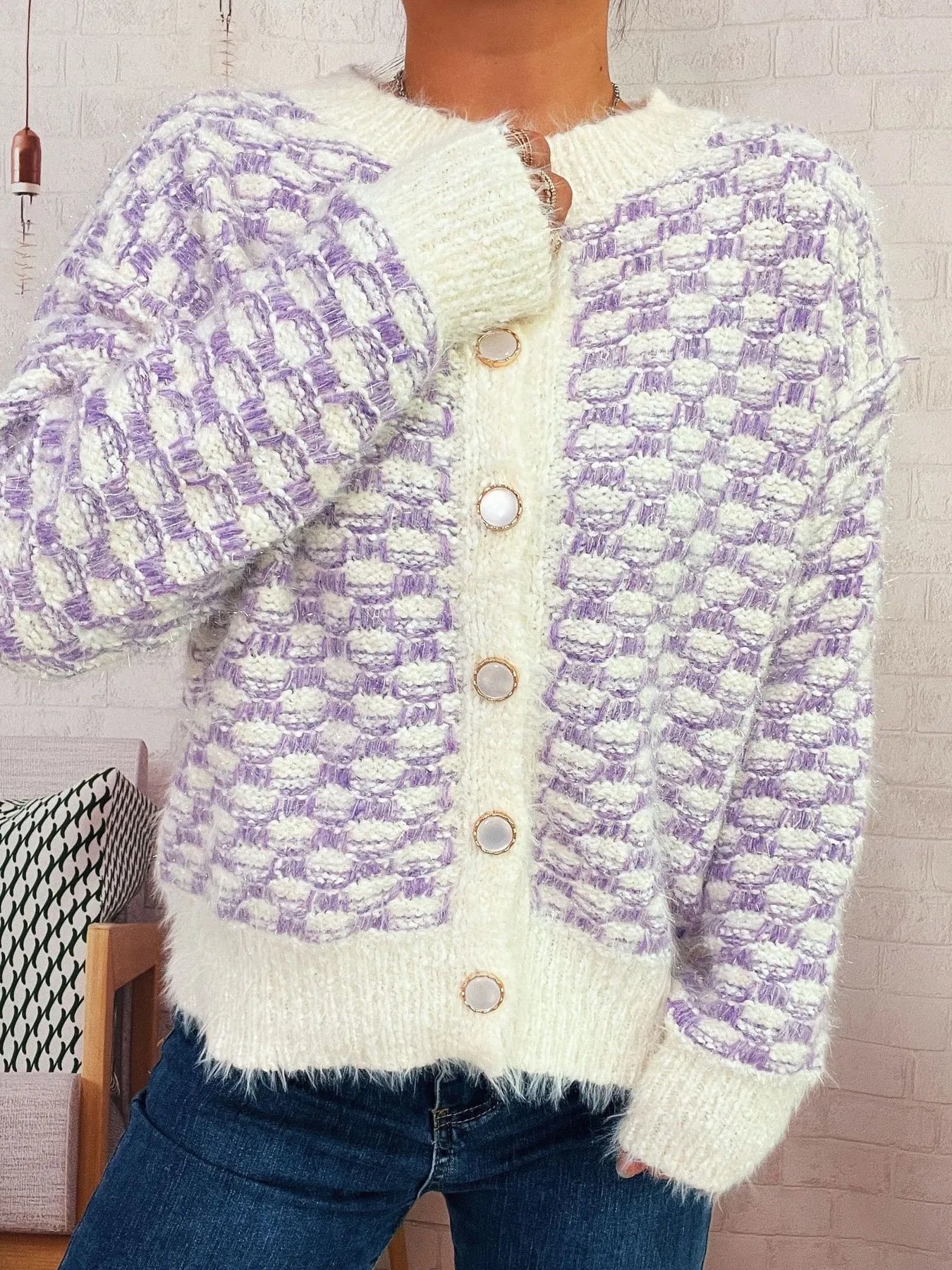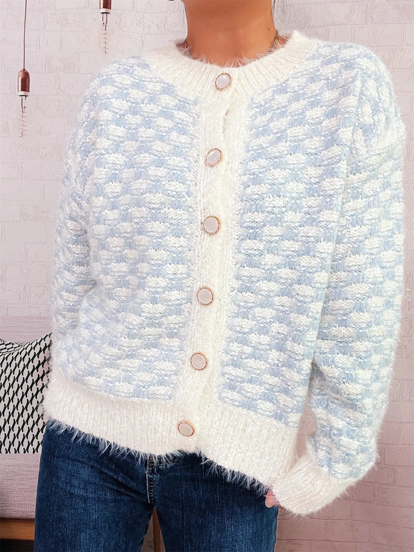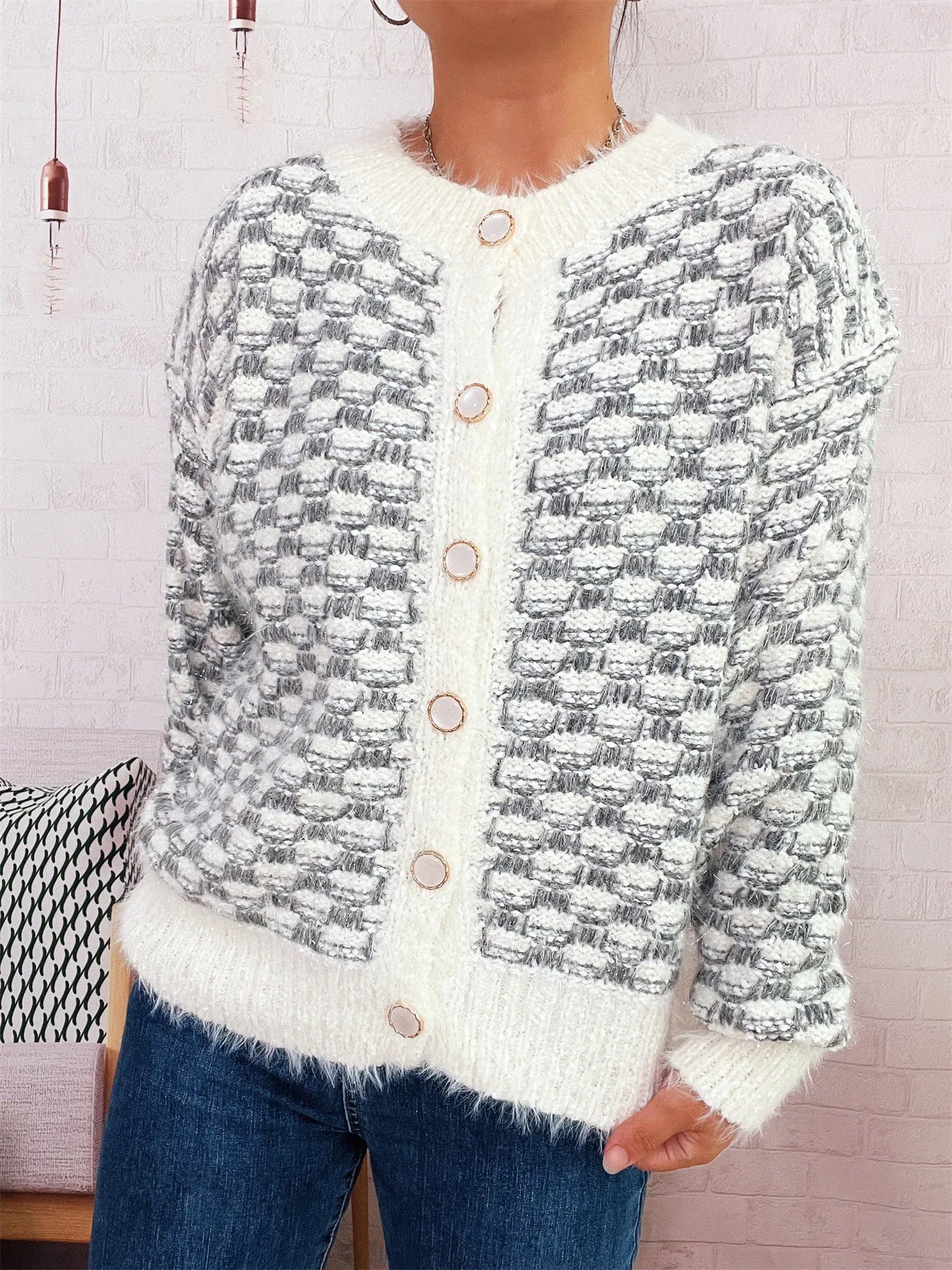 Fluffy Textured Button Up Cardigan Soft Cozy Knit Sweater
