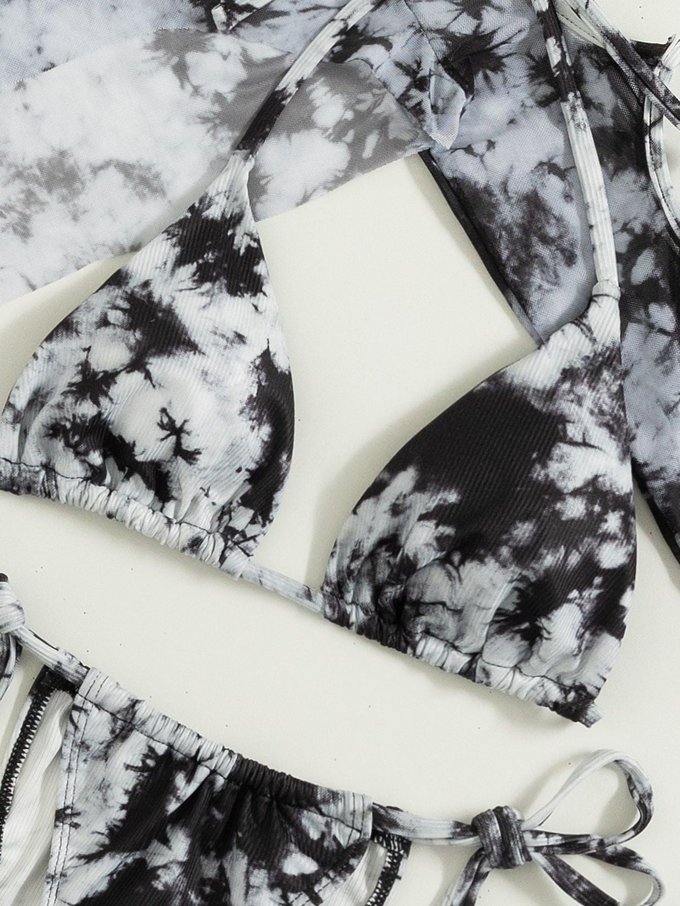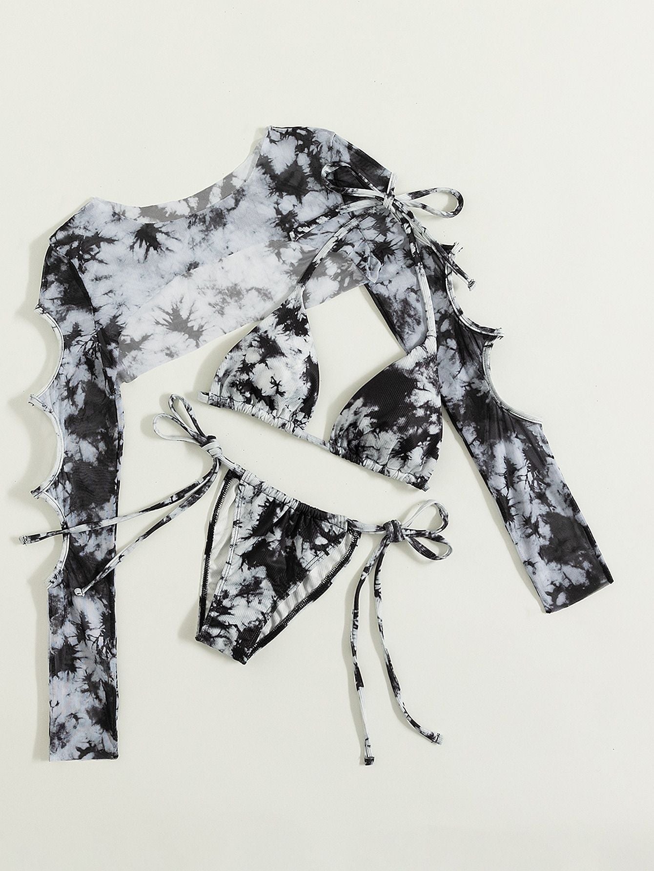 Swimwear Blooming Printed Bikini Lace-up Sexy Bikini Three Piece Two Piece Swimsuit