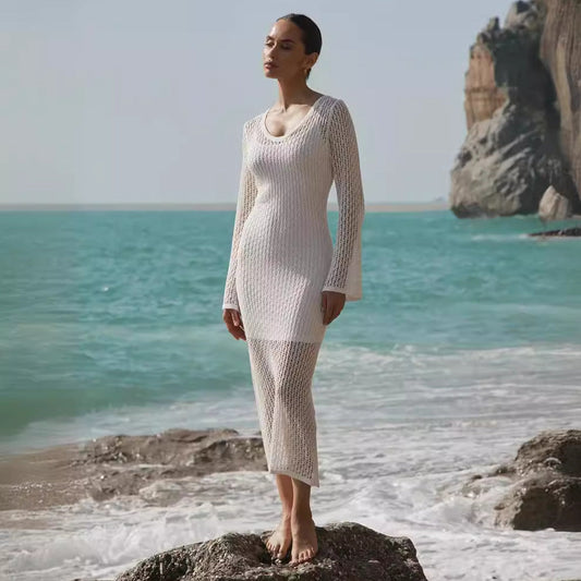 Summer Beach Dress Sexy Cutout See through Sun Protection by the Sea Beach Cover Up Knitted Dress