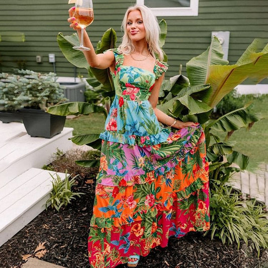 French Flying Sleeve Printed One Piece Swimsuit Women Cake Skirt