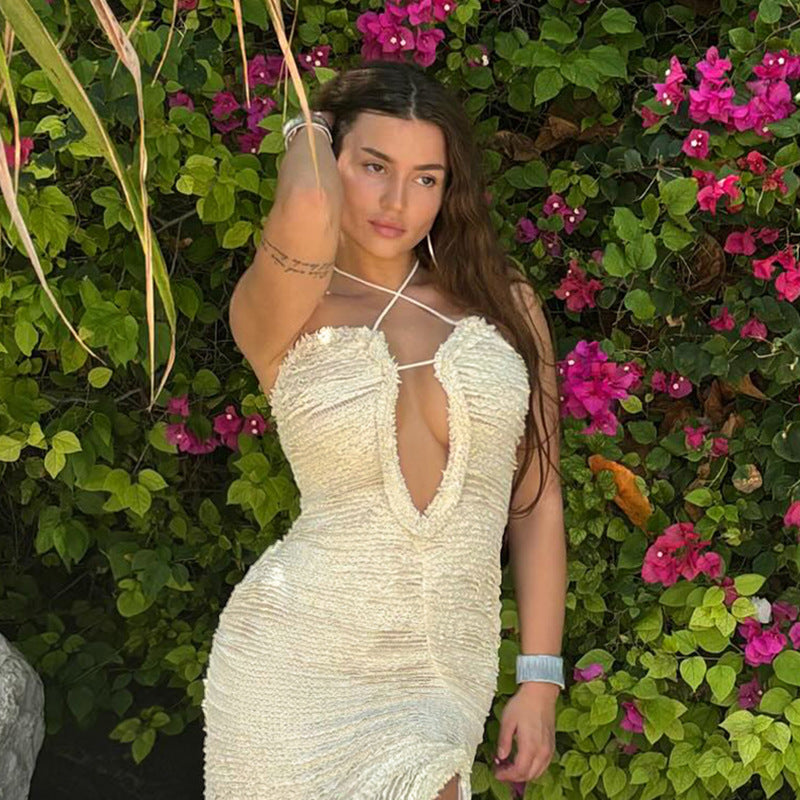 Sexy see through backless slim fit comfortable beach beach cover up bohemian woolen dress