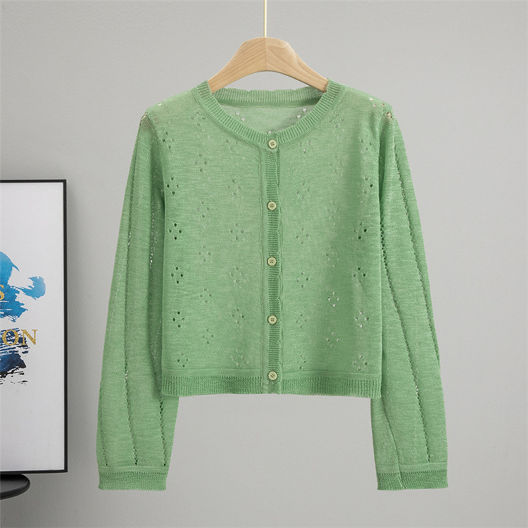 All Matching Hollow Out Cutout Sun Protection Short Knitted Cardigan Women Summer Figure Flattering Outerwear Top