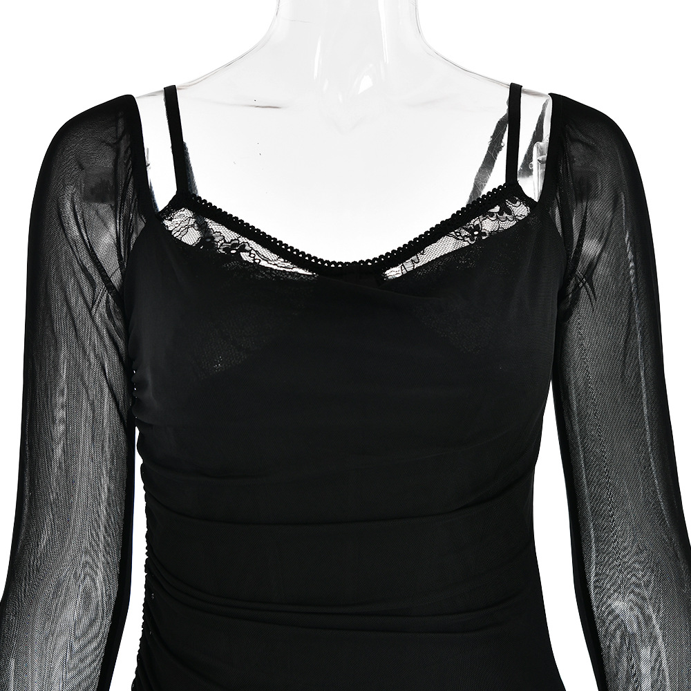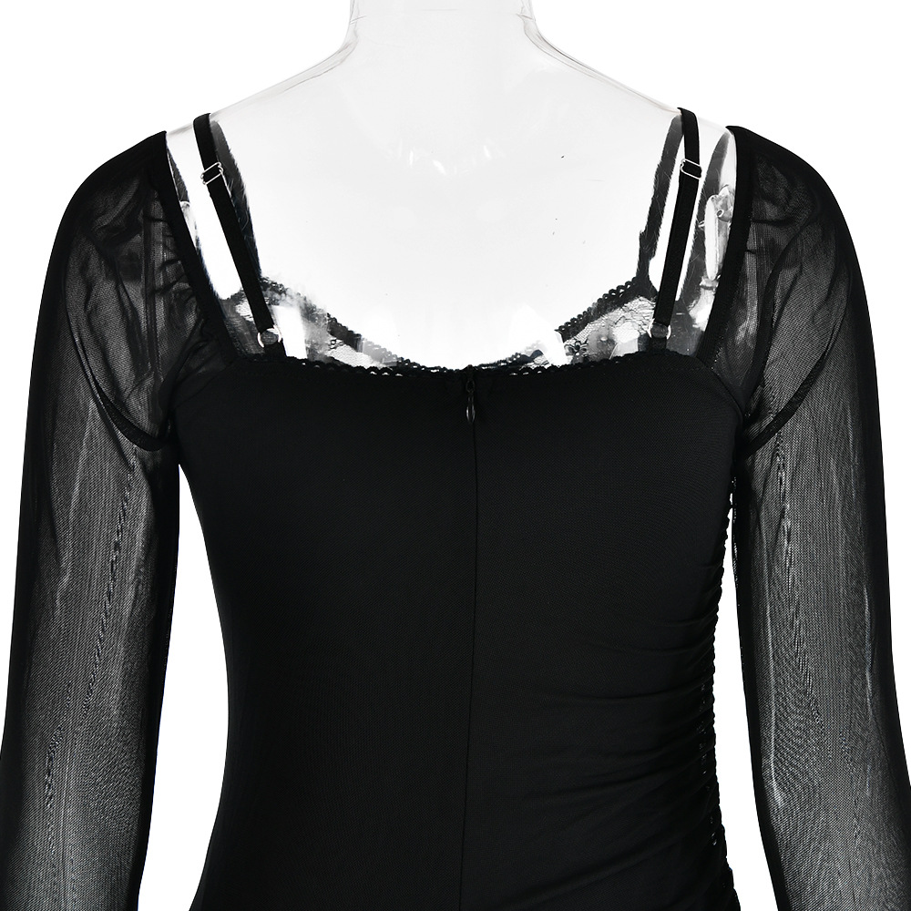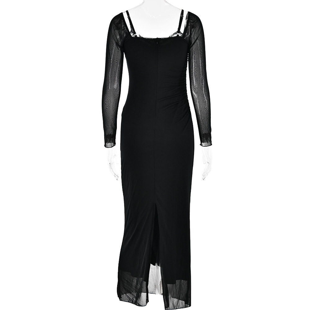 Autumn Long Sleeve Spaghetti Strap Dress Women Sexy Backless Tight Split Maxi Dress