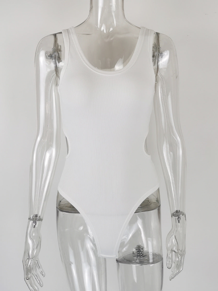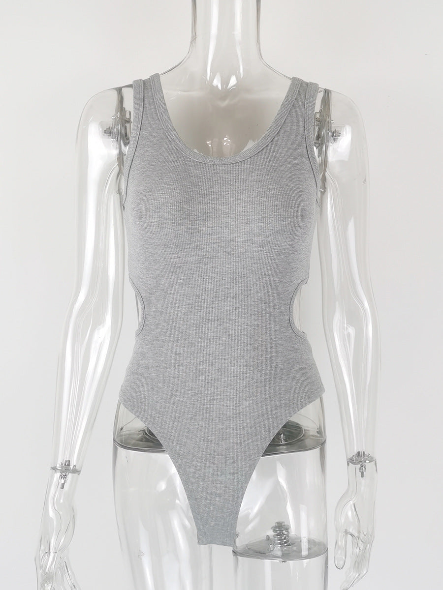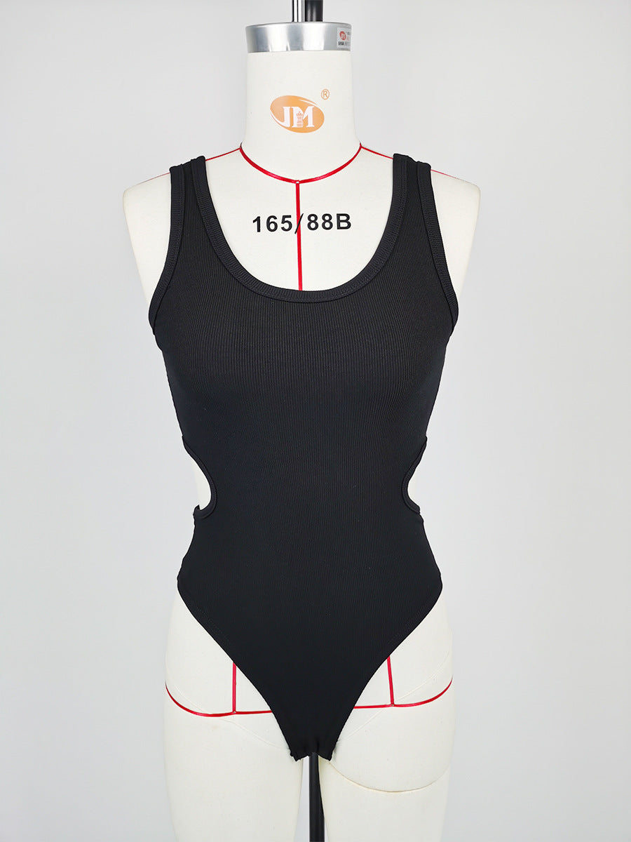 Autumn Winter Women Sexy Slim Fit U Collar Waist Hollow Out Cutout-out Rayon Rib Jumpsuit Women