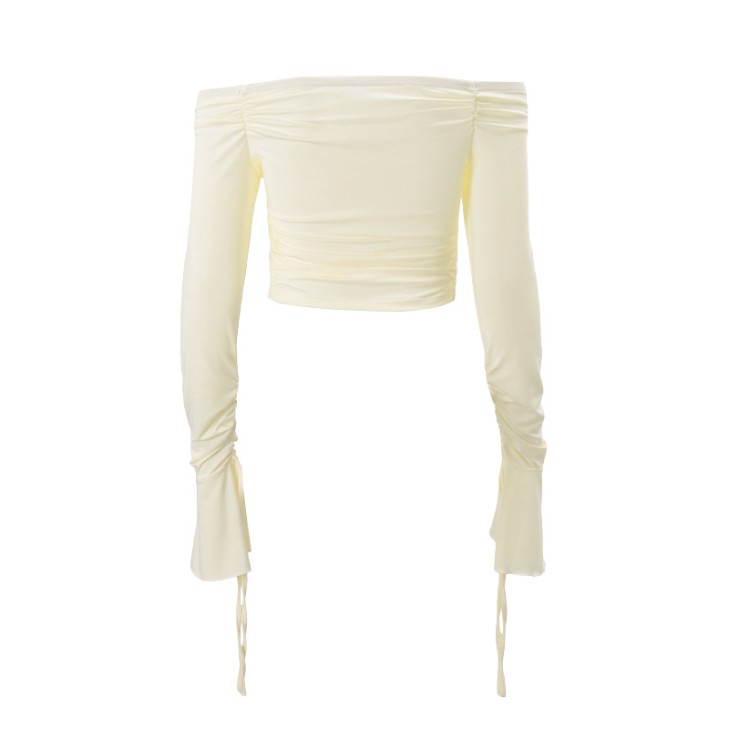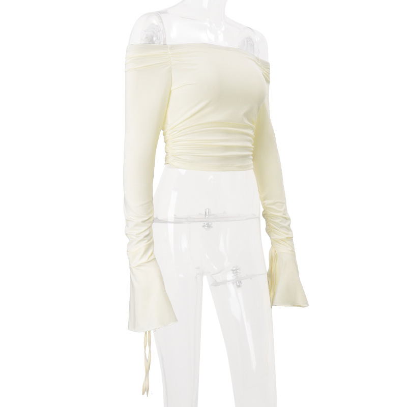 Fall Women Clothing Sexy off Shoulder Bell Sleeve Solid Color Slim Fit T shirt Top