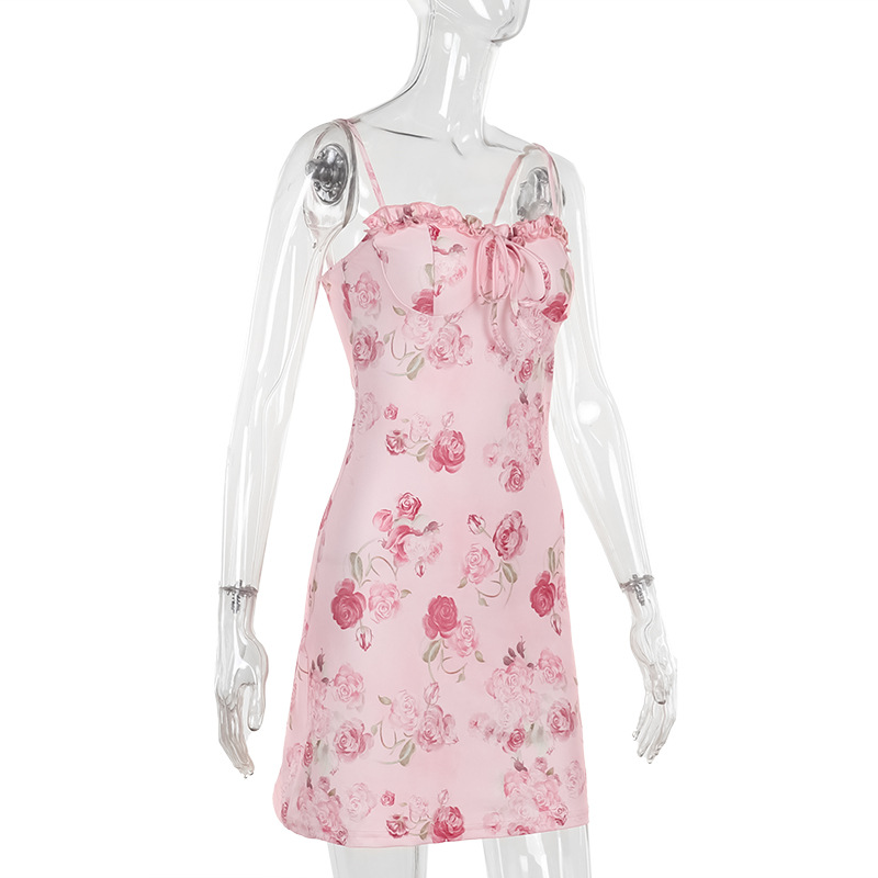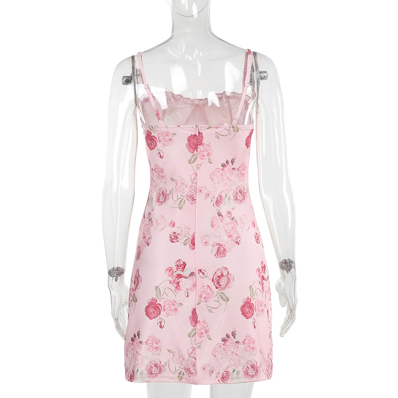 Rose Print Sexy Suspenders Dress Women Casual Sexy Dress