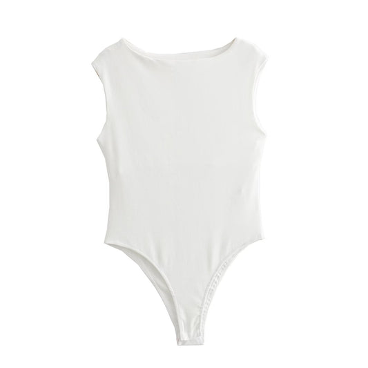 Spring Women Clothing Simple Sleeveless Boat Collar Cotton Jumpsuit