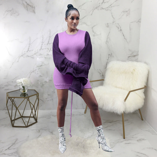 Loose Lace up Knitted Jacquard Home Wear Autumn Long Sleeve Shorts Comfort Casual Pajamas for Women