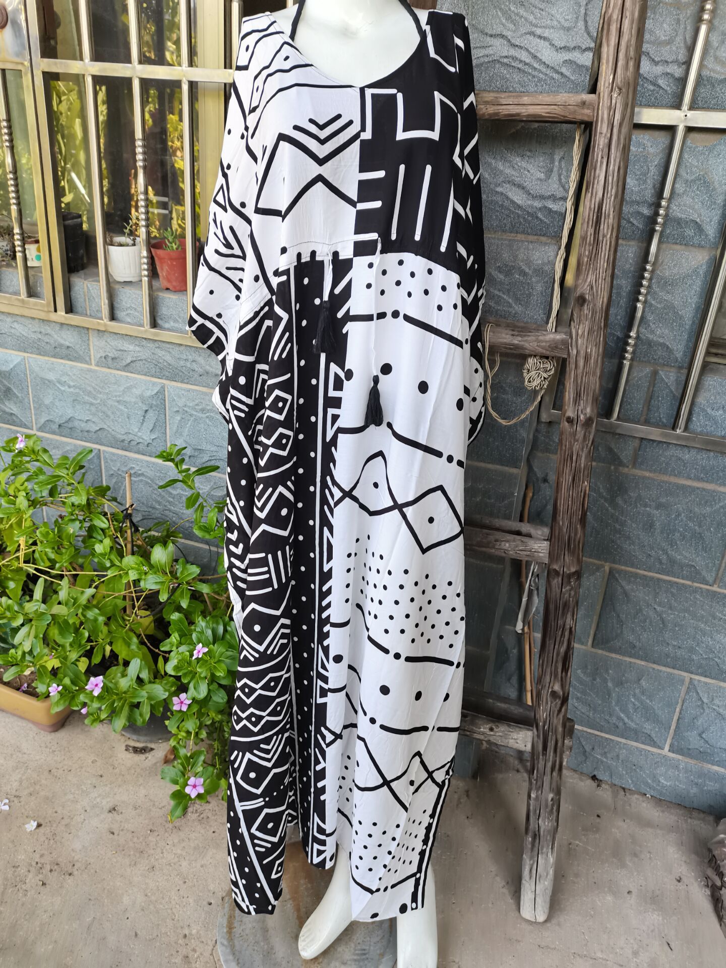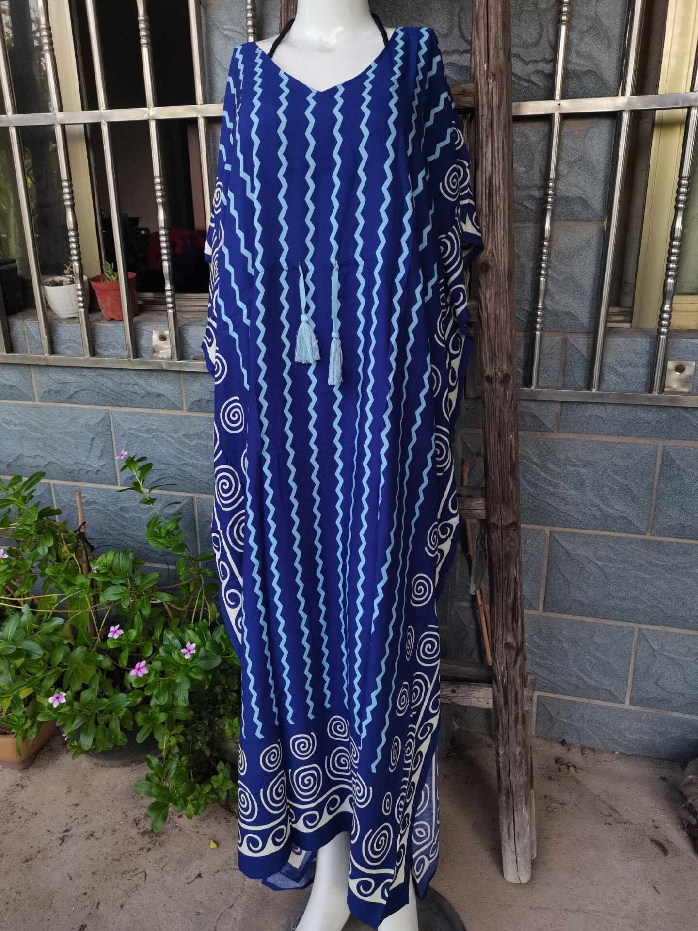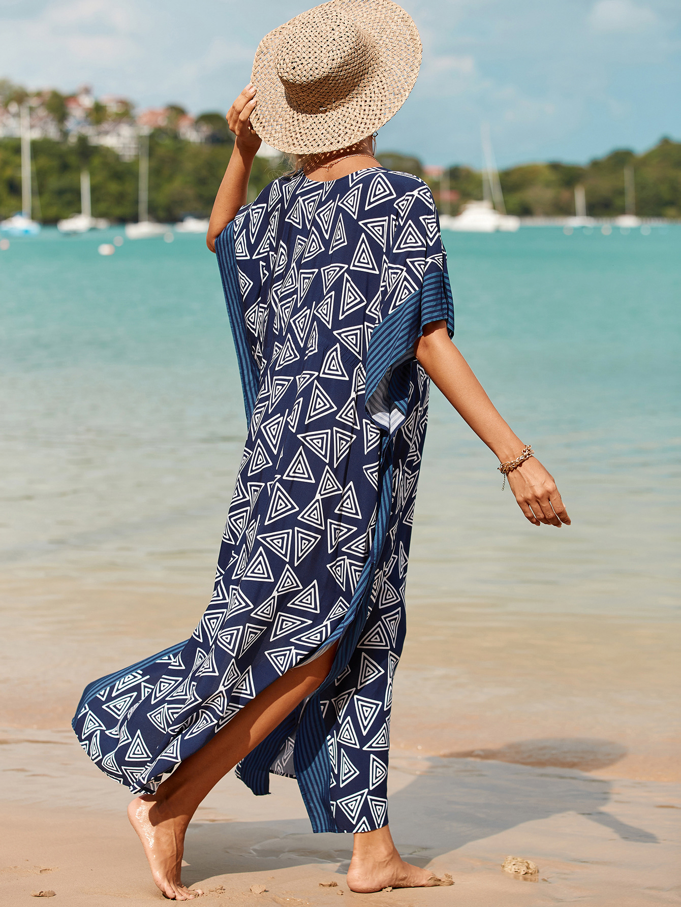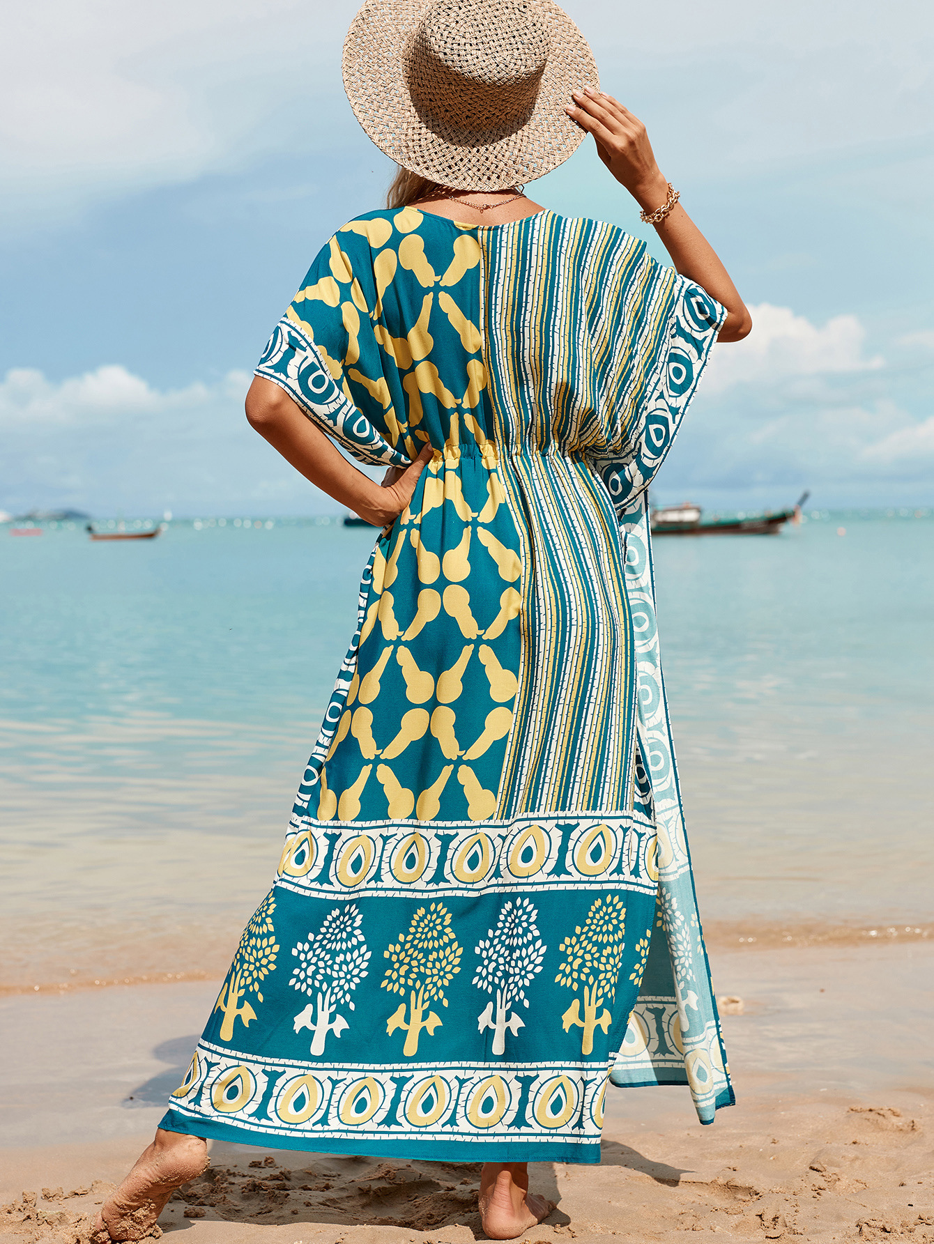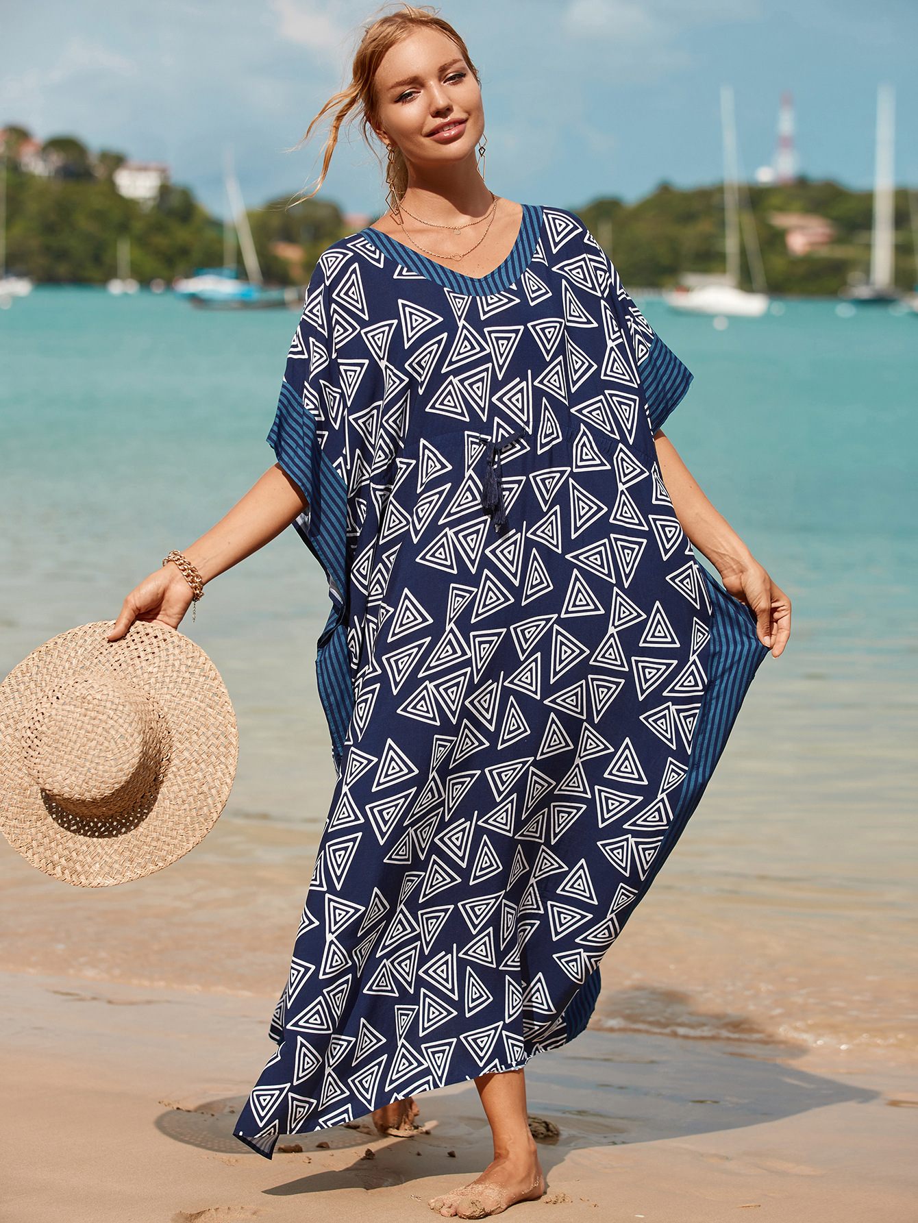 Printed Pull Belt Robe Vacation Casual Beach Bikini Cover