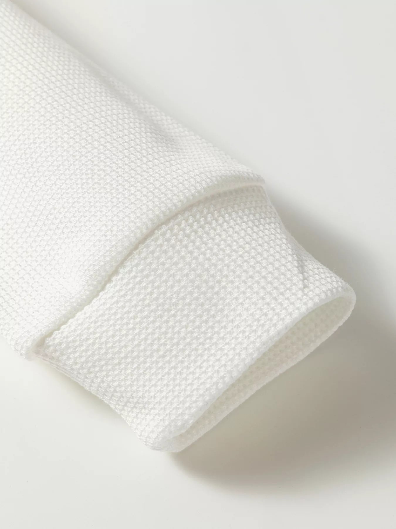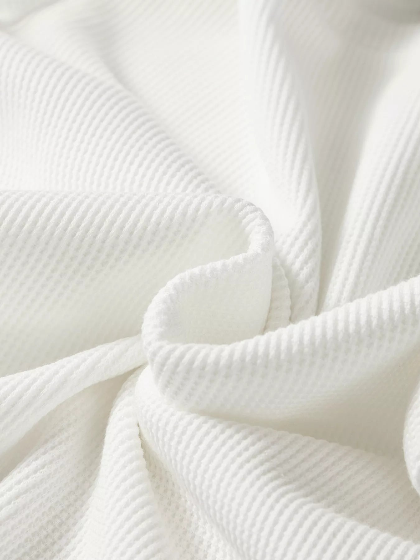 Rounded Neck Waffle Top With Long Sleeves Polyester Cotton