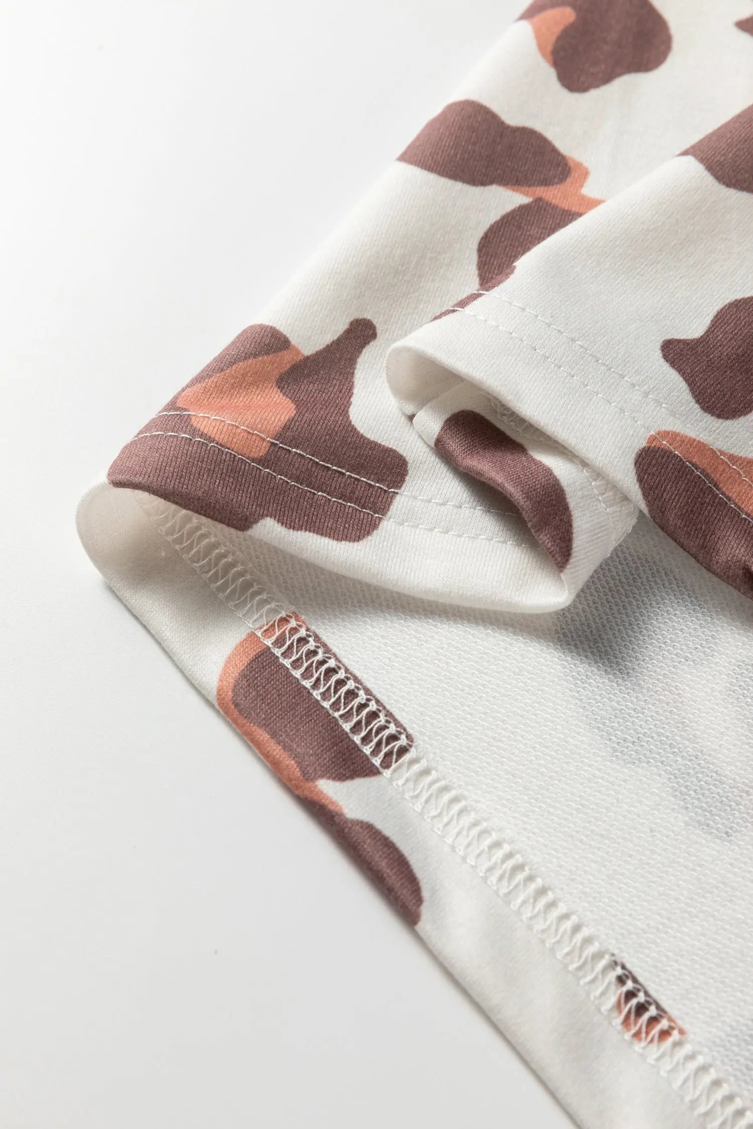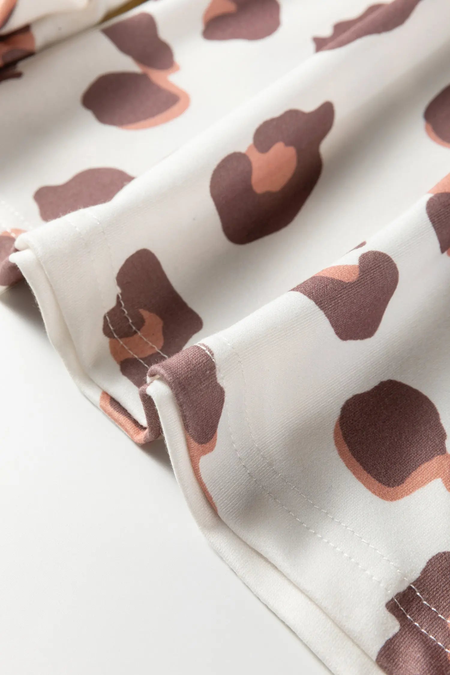 Beige Leopard Print Patch Pocket Drawstring Loose Pants