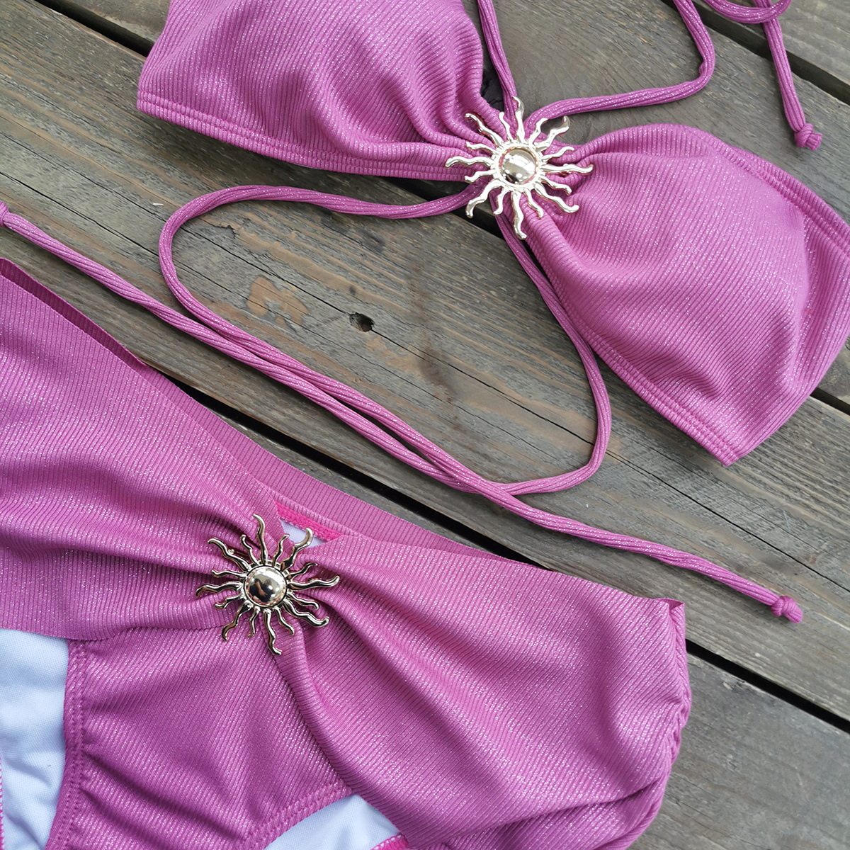 Halter Lace up Tube Top Solid Color Split Swimsuit Women High Waist Bikini Sexy Bikini