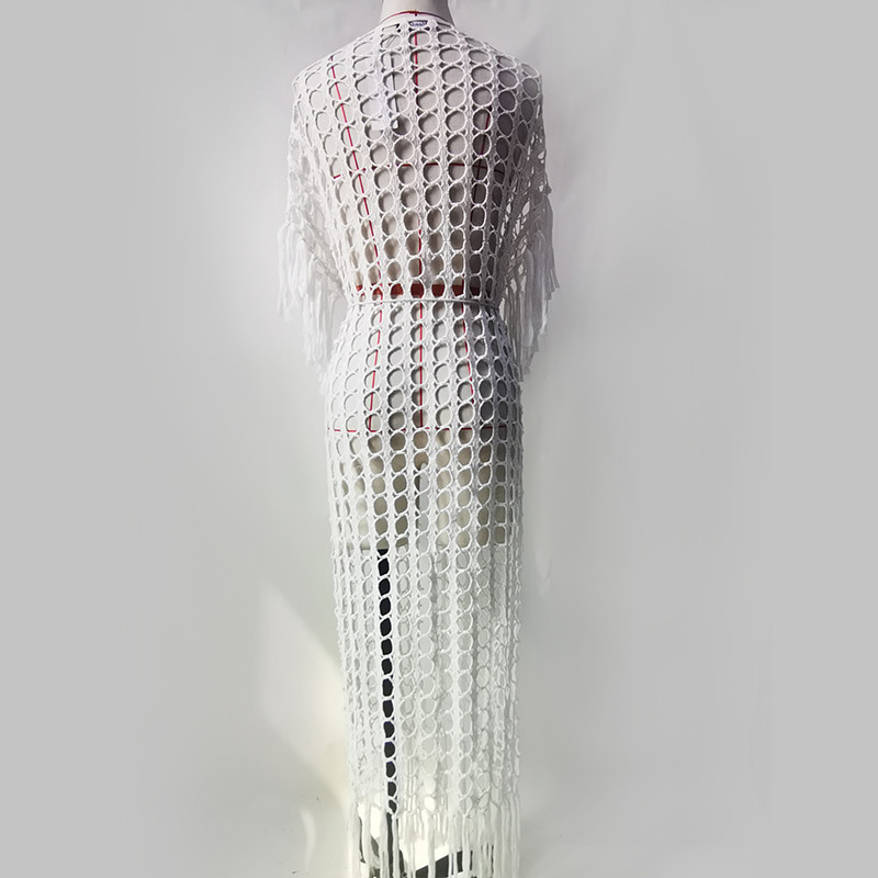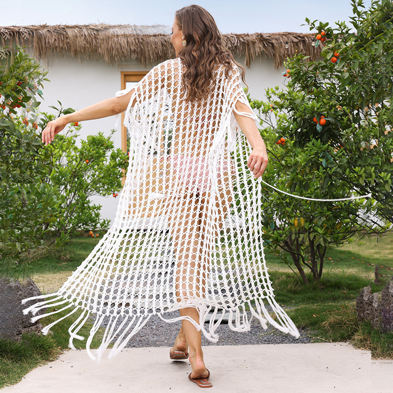 Knitted Tassel Beach Cover up Sexy Mesh Hollow Out Loose Vacation Cardigan Bikini Cover