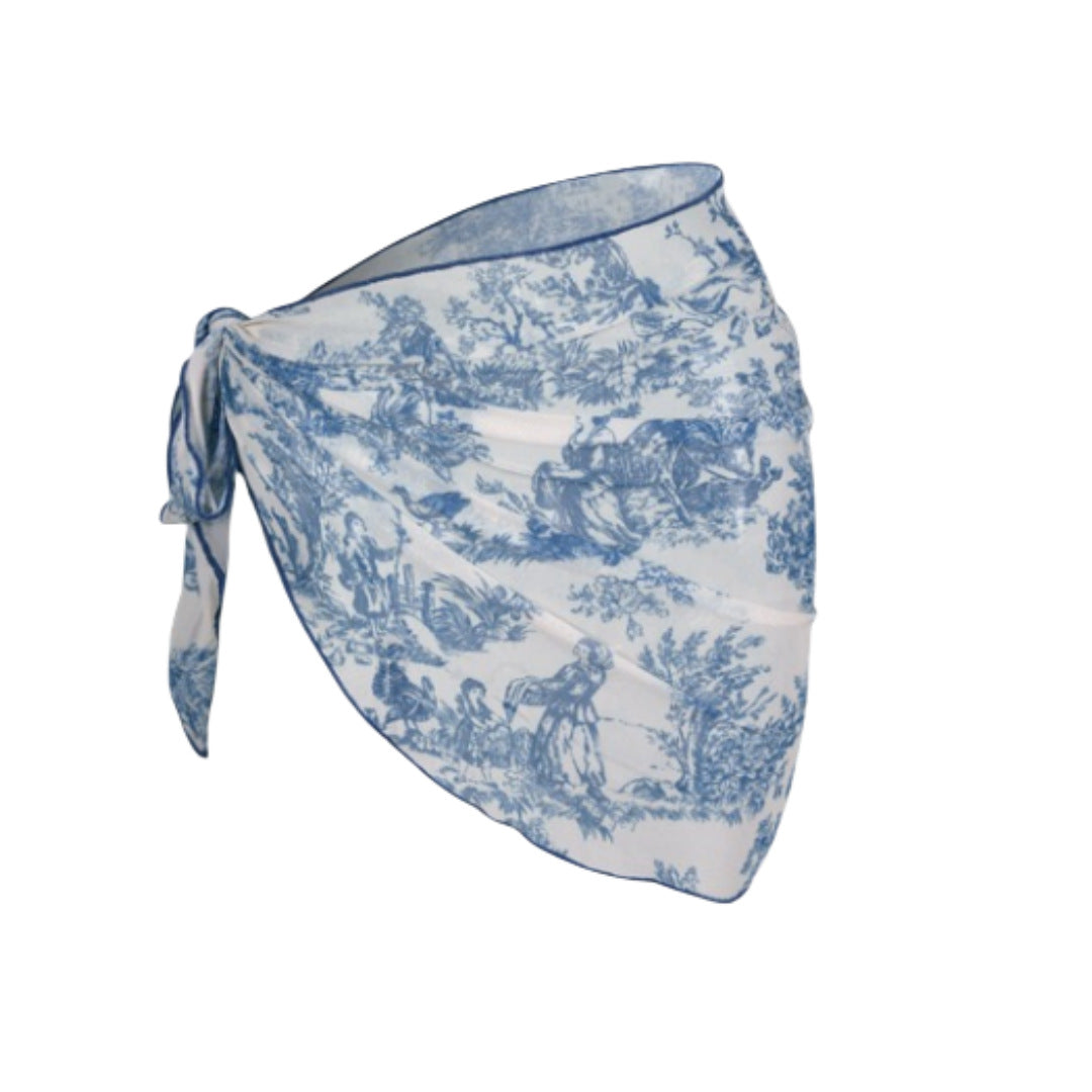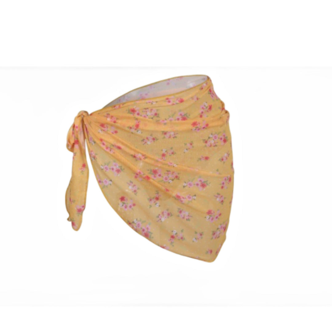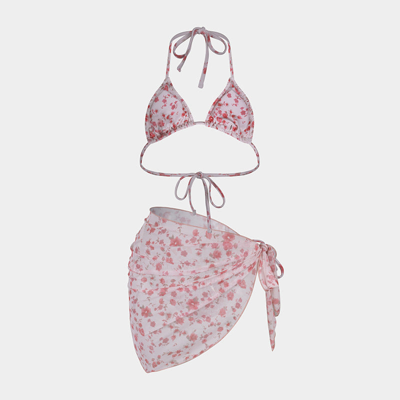 Printed Bikini Three Piece Gauze Skirt Split Sexy Vacation Bikini Swimsuit