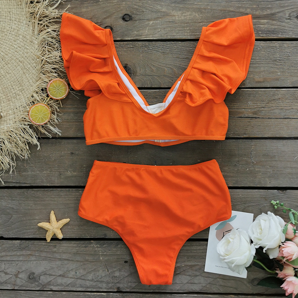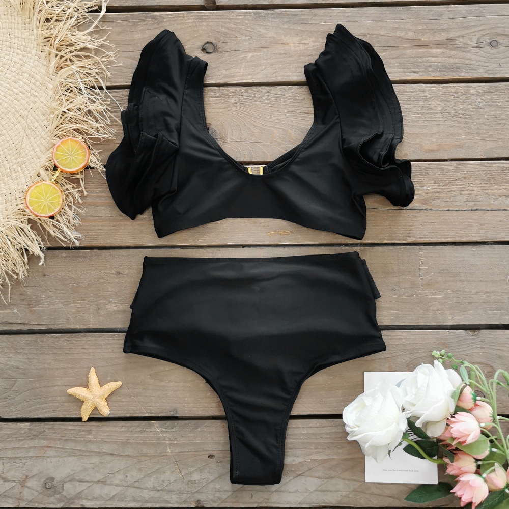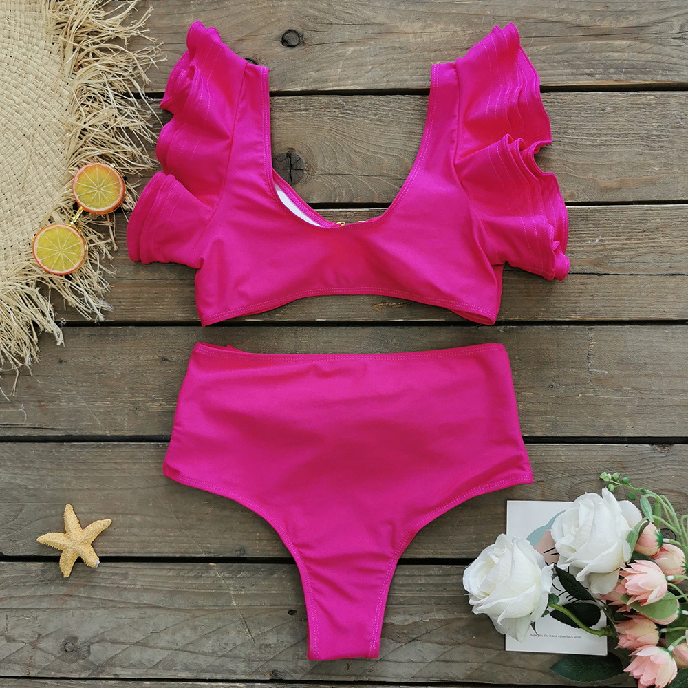 Solid Color Split Swimsuit Women Heavy Industry Line Flounced Sexy Bikini Swimsuit