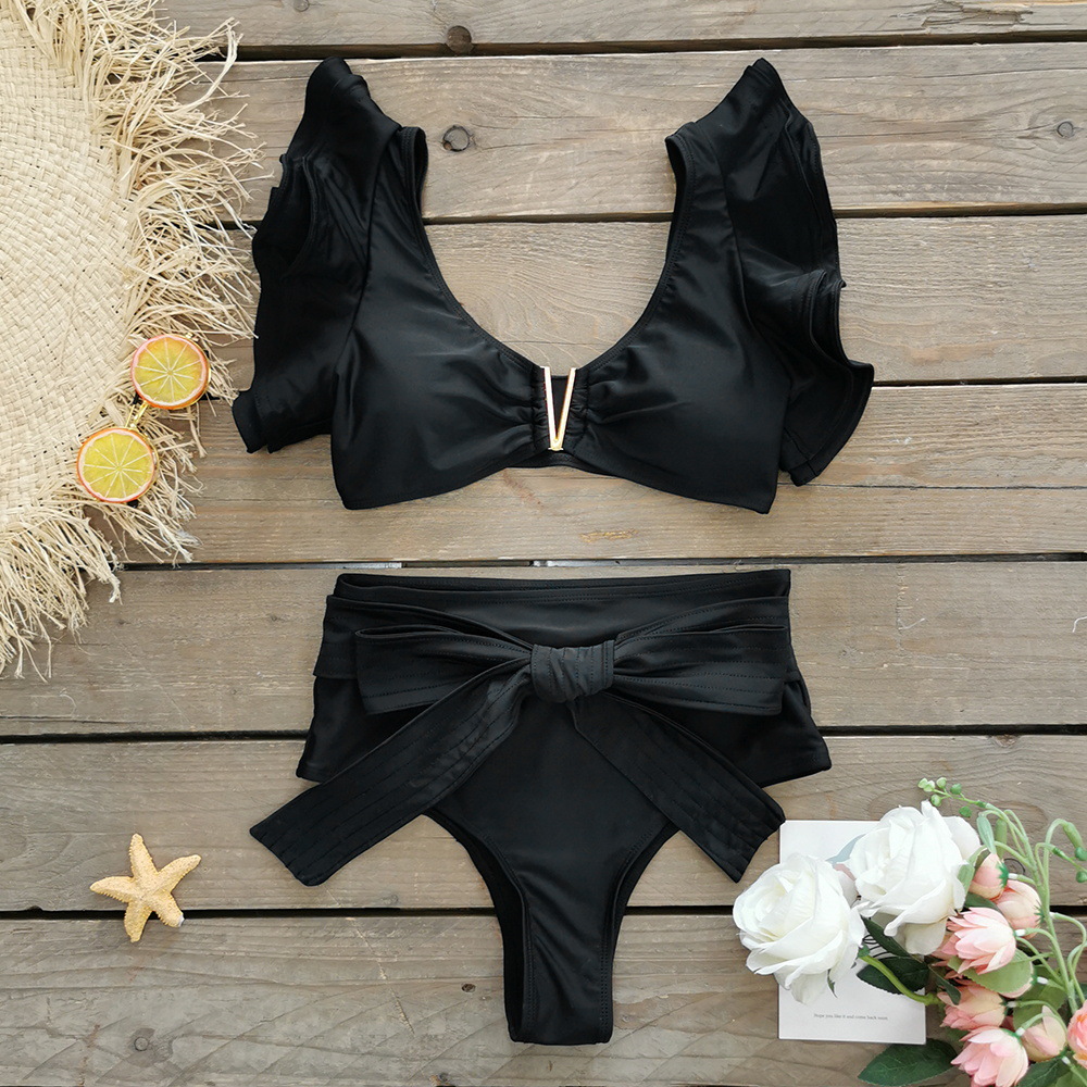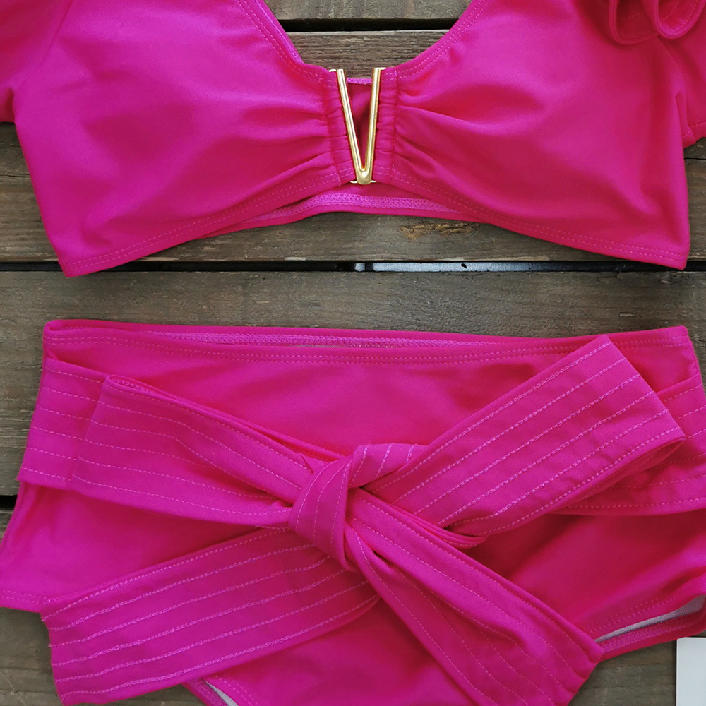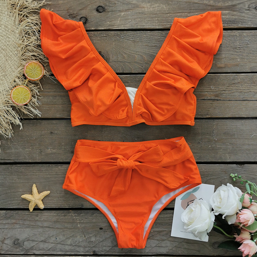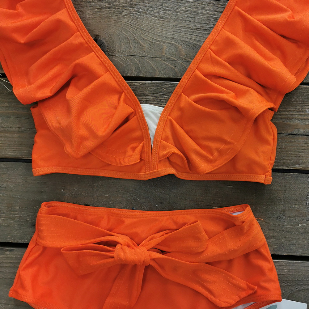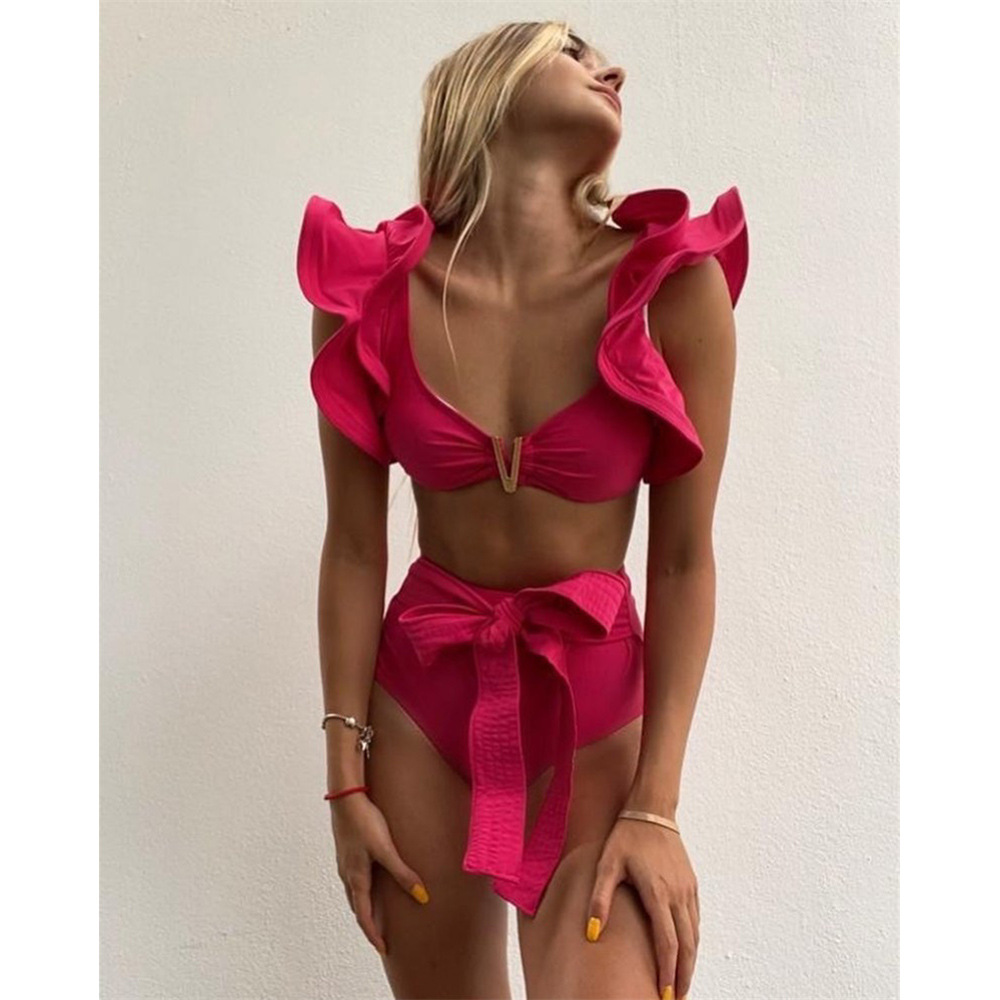 Solid Color Split Swimsuit Women Heavy Industry Line Flounced Sexy Bikini Swimsuit Bella Mia
