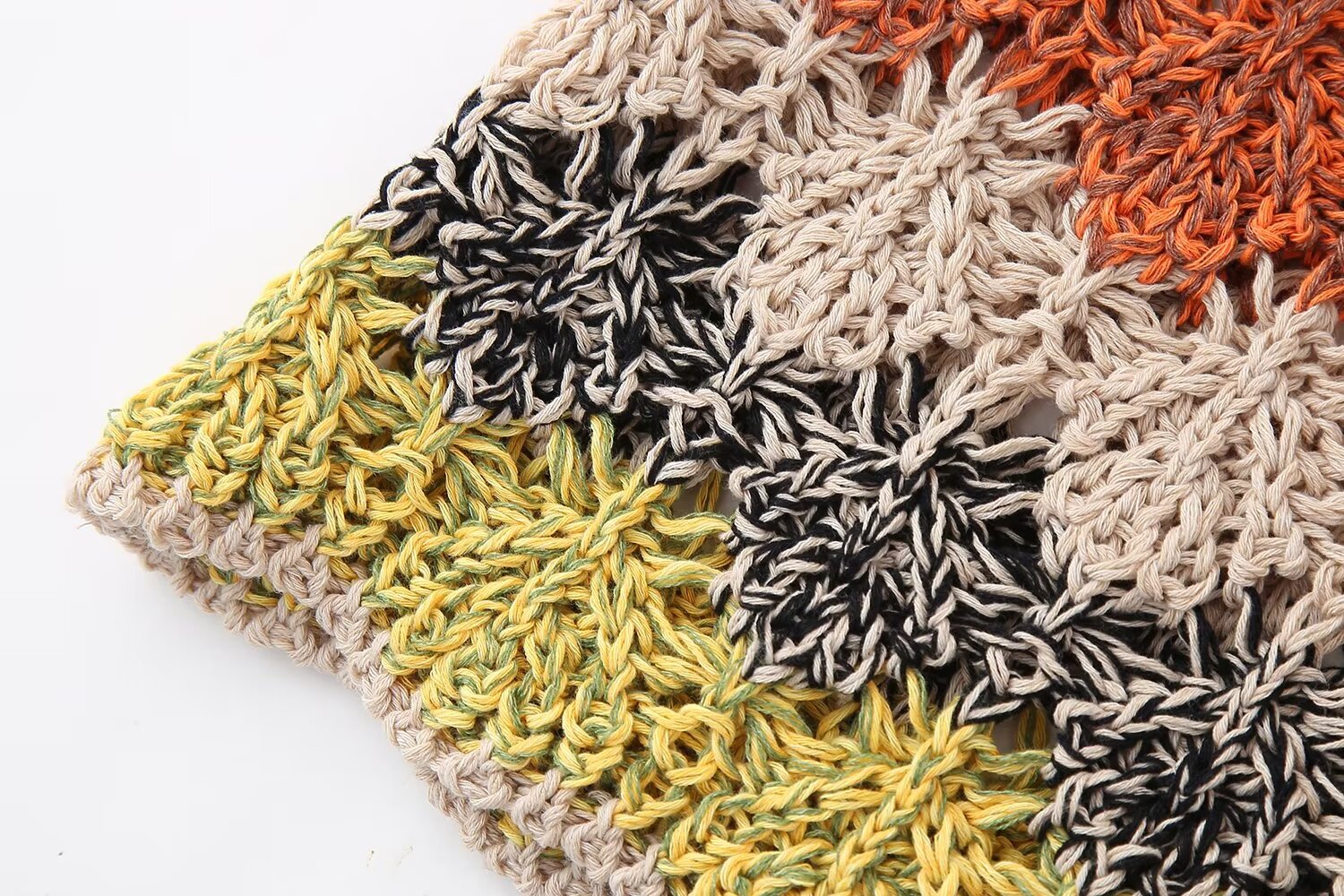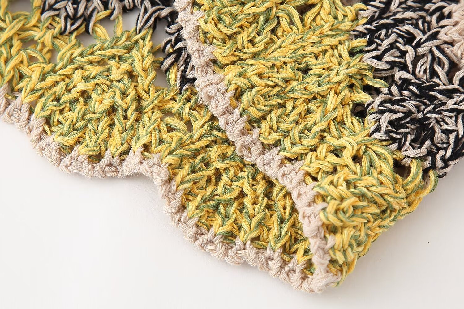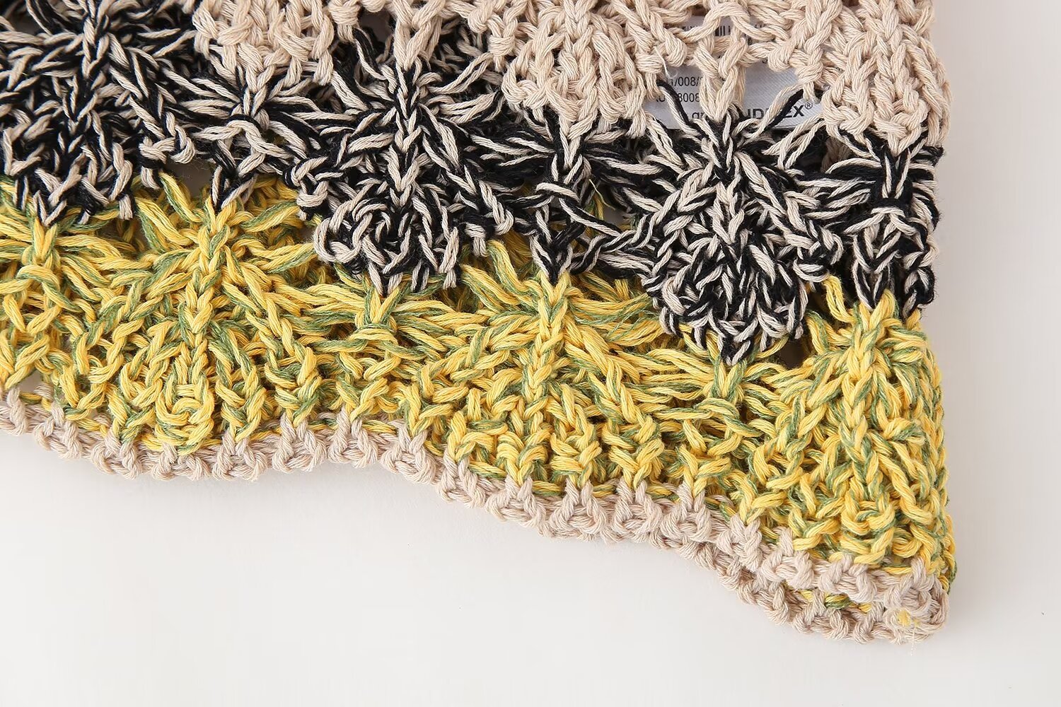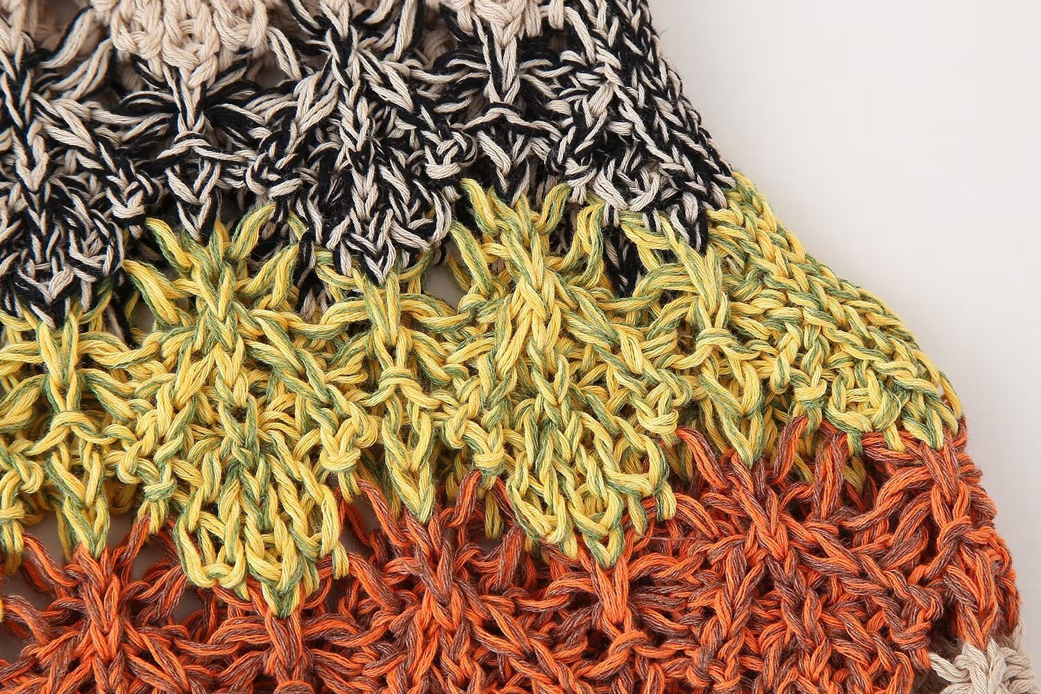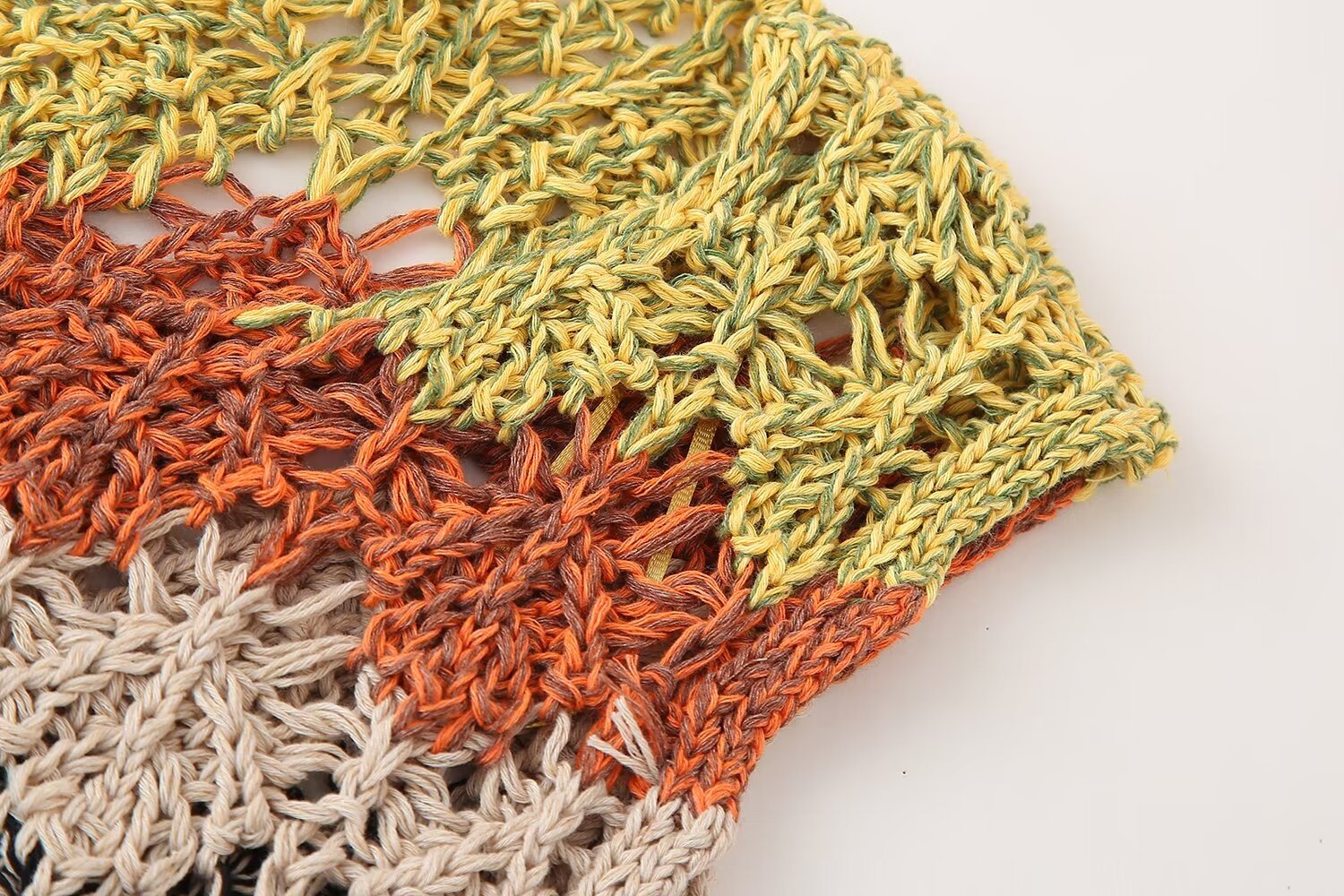 Lightweight and breathable, this hollow-out knit top combines a round neckline with a multicolor stripe crochet pattern. The sleeveless silhouette and short length deliver a casual street style ideal for warm days and vacation wear. Made primarily from polyester, the regular-fit top drapes comfortably over the torso for everyday pairing with swim bottoms, denim shorts, or flowing skirts.