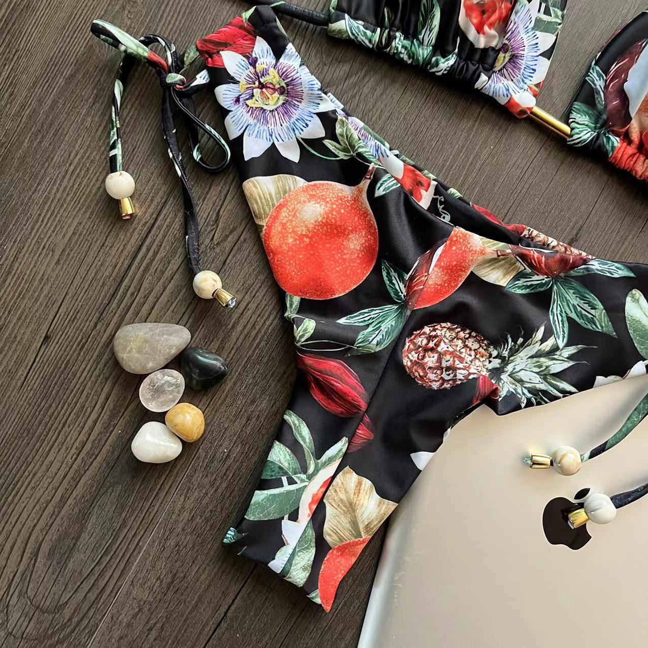 Key details: Pattern: Floral/Printed; Material: Polyester; Strap type: Halter; Main composition: Polyester; Season: Summer.