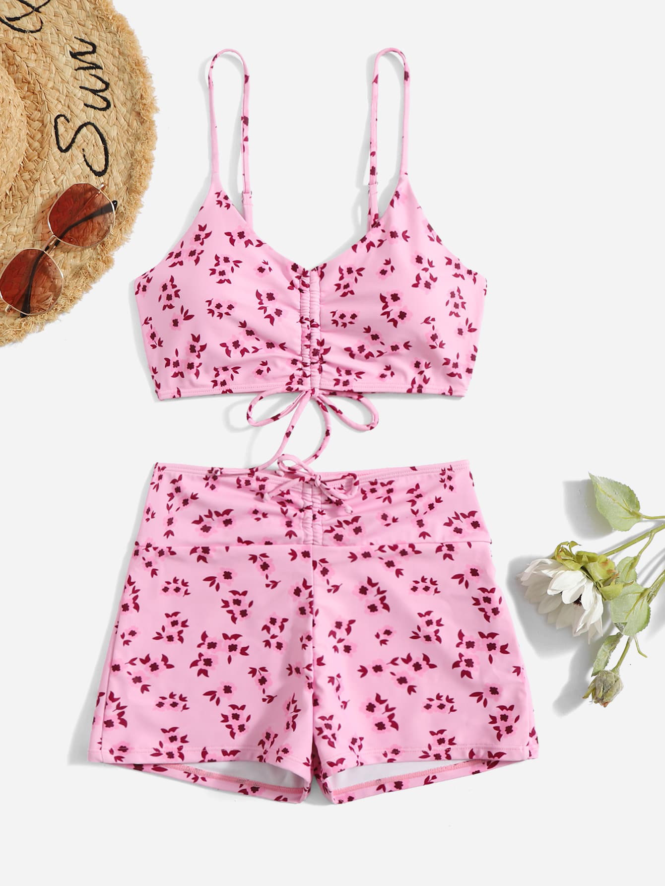 Swimsuit Women Split High Waist Boxer Floral Print Swimsuit