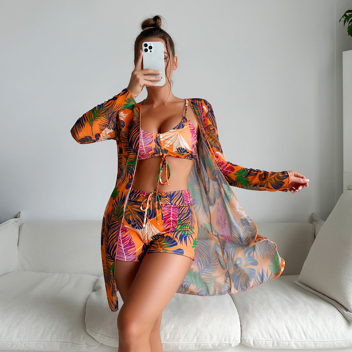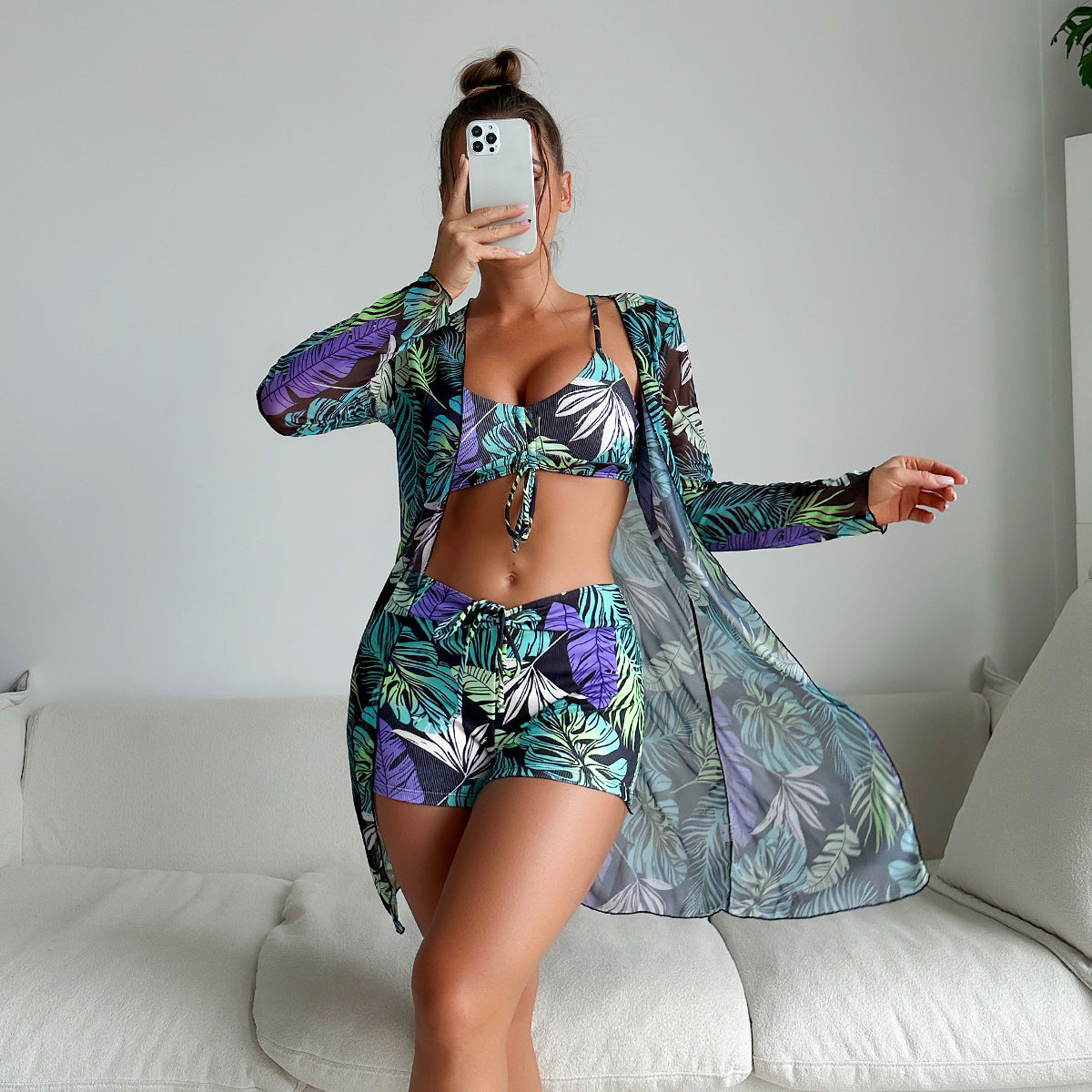 Swimsuit Women Split Three Piece Boxer Shorts Bikini Printed Rope Net Red Swimsuit