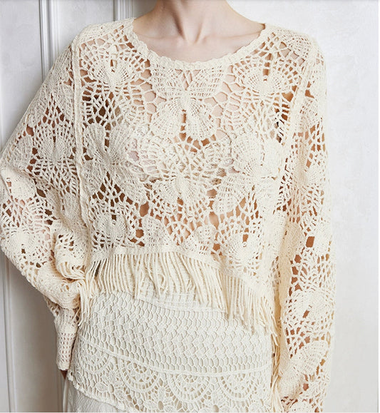 Hand Crocheting Wool Yarn Vacation Sexy Lace Beach Tassel Swimsuit Smock Dress