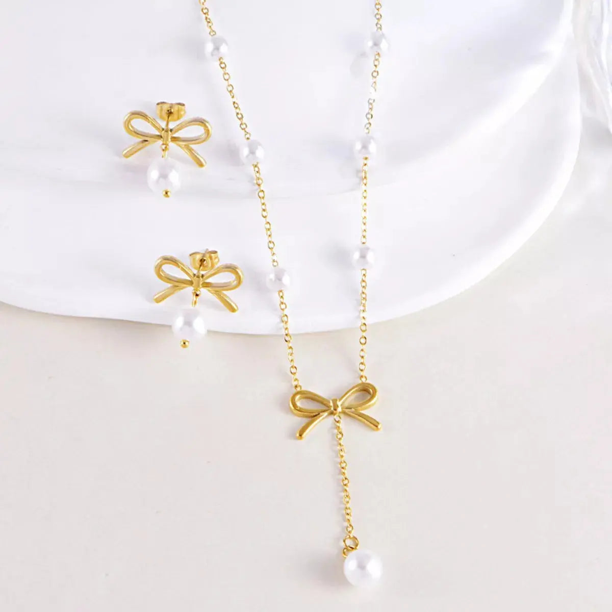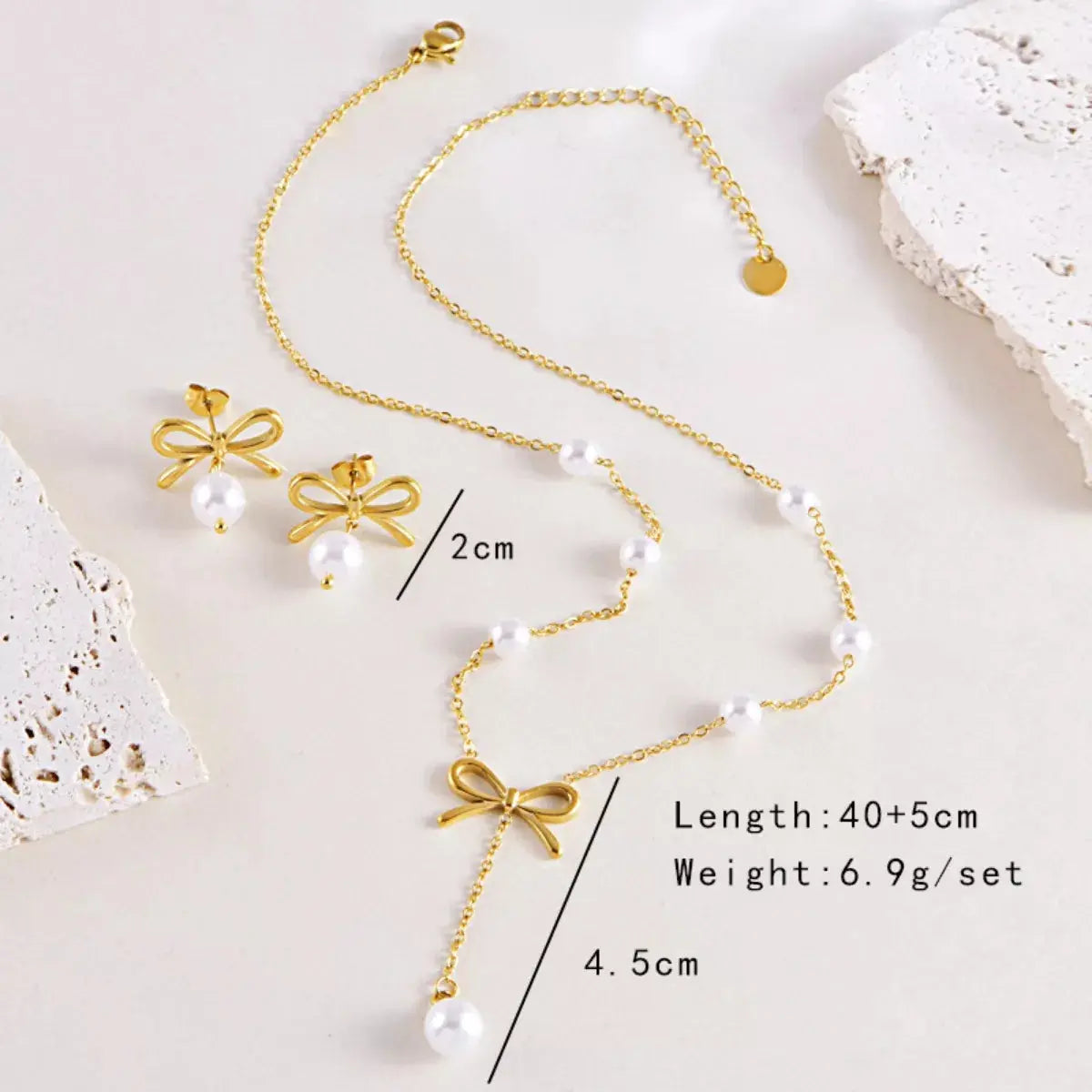 - Material:Synthetic Pearl,18K Gold-Plated,Stainless Steel