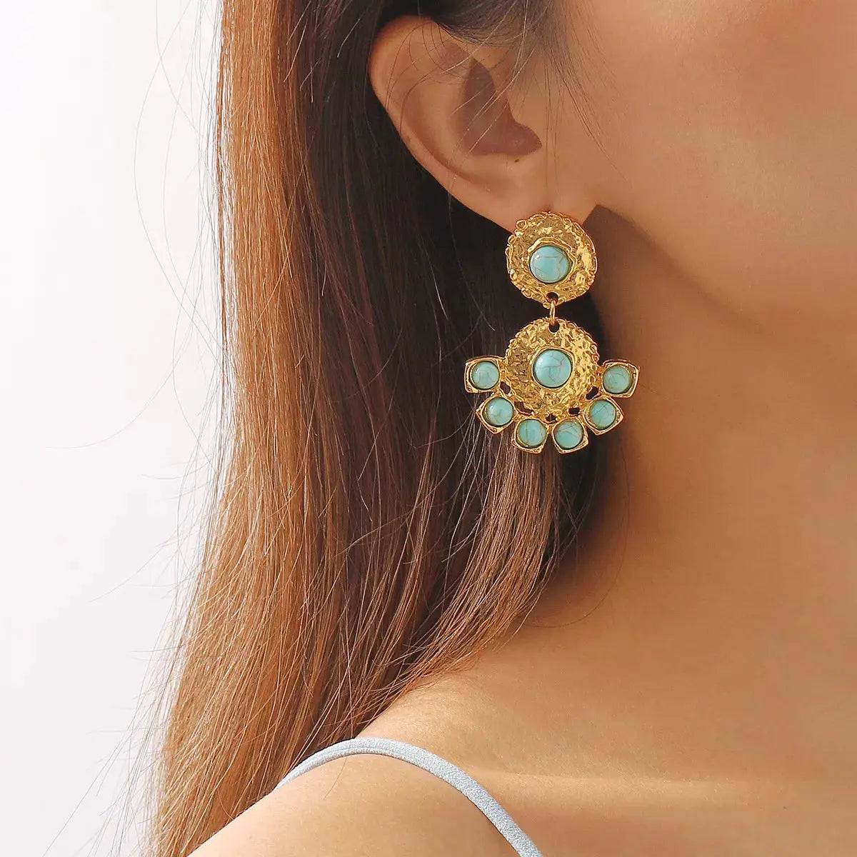 - Material:Artificial turquoise,18K Gold-Plated,Alloy