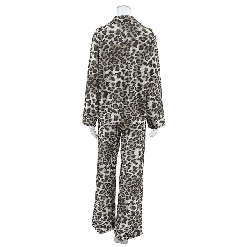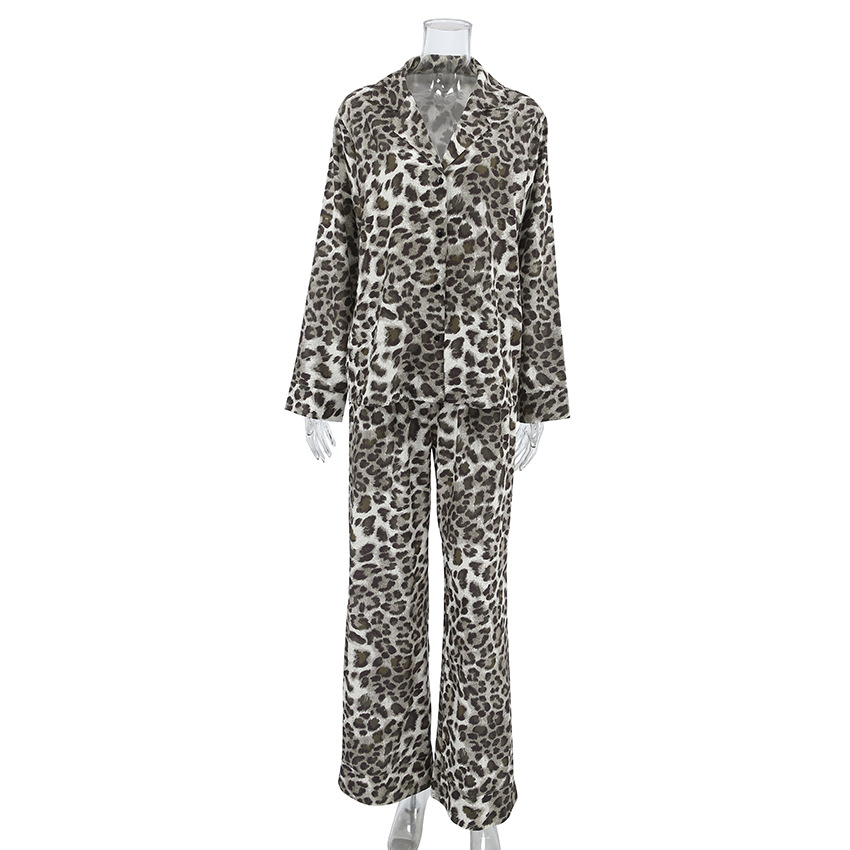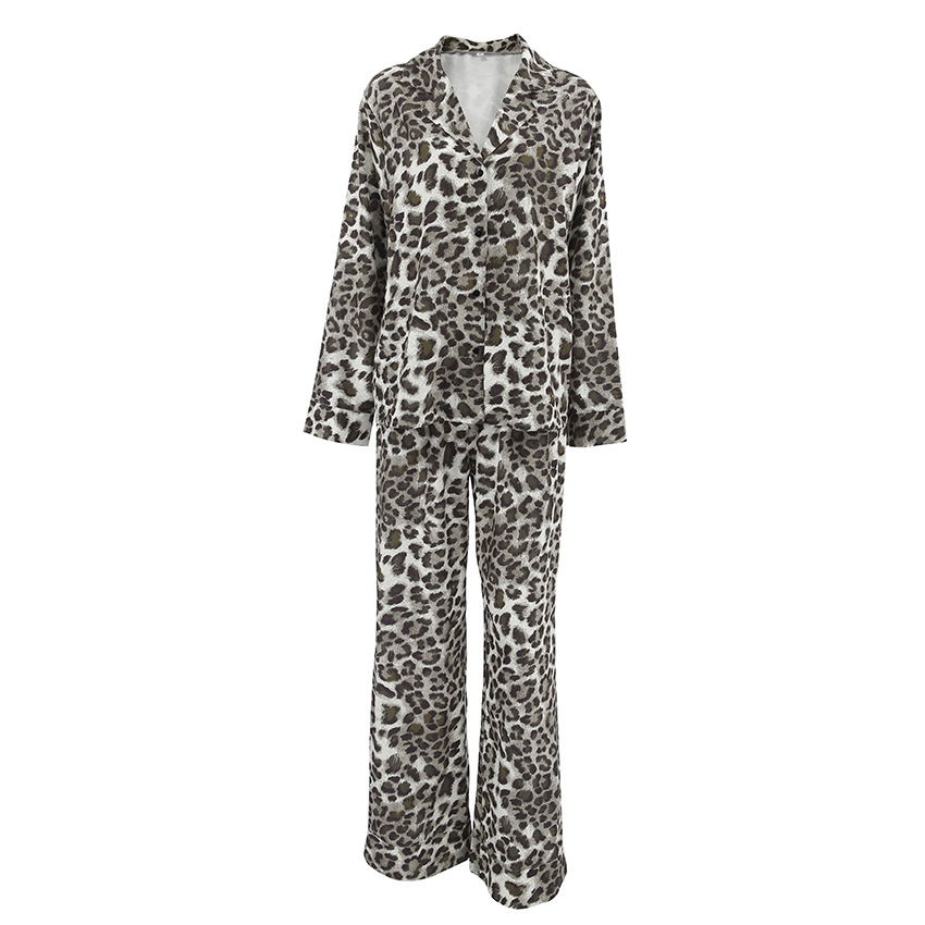 Autumn Satin Leopard Print Soft Comfortable Pajamas Long Sleeved Trousers Women Homewear